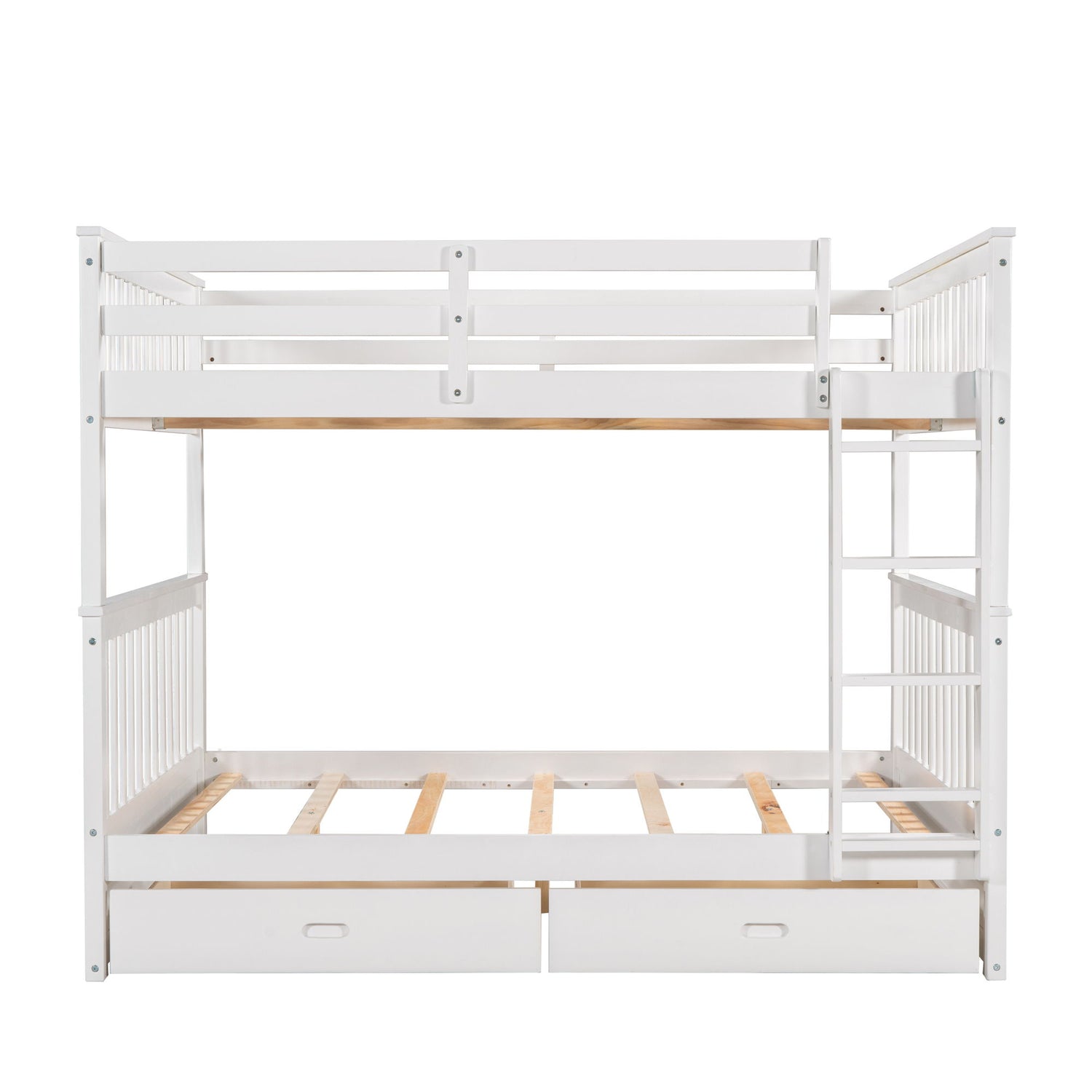 Full Over Full Bunk Bed With Ladders And 2 Storage Drawers - White