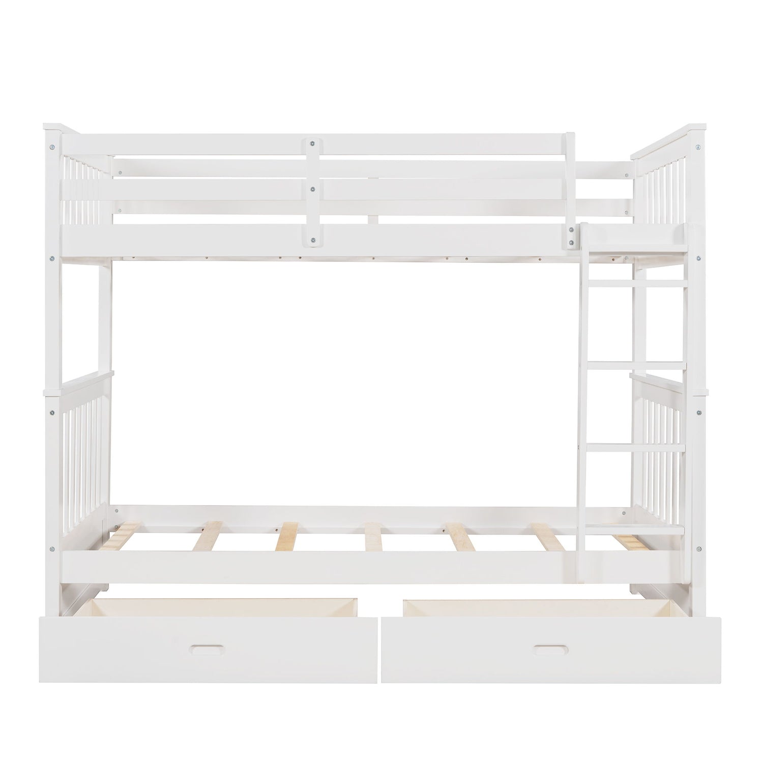 Twin Over Twin Bunk Bed With Ladders And 2 Storage Drawers - White
