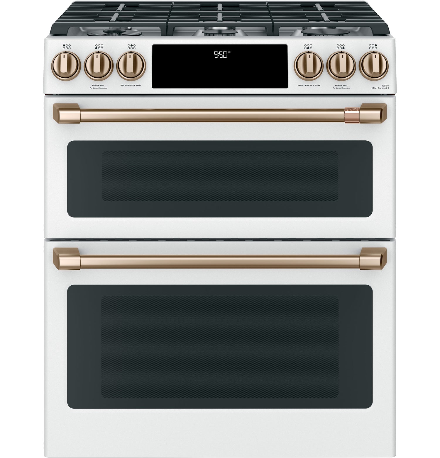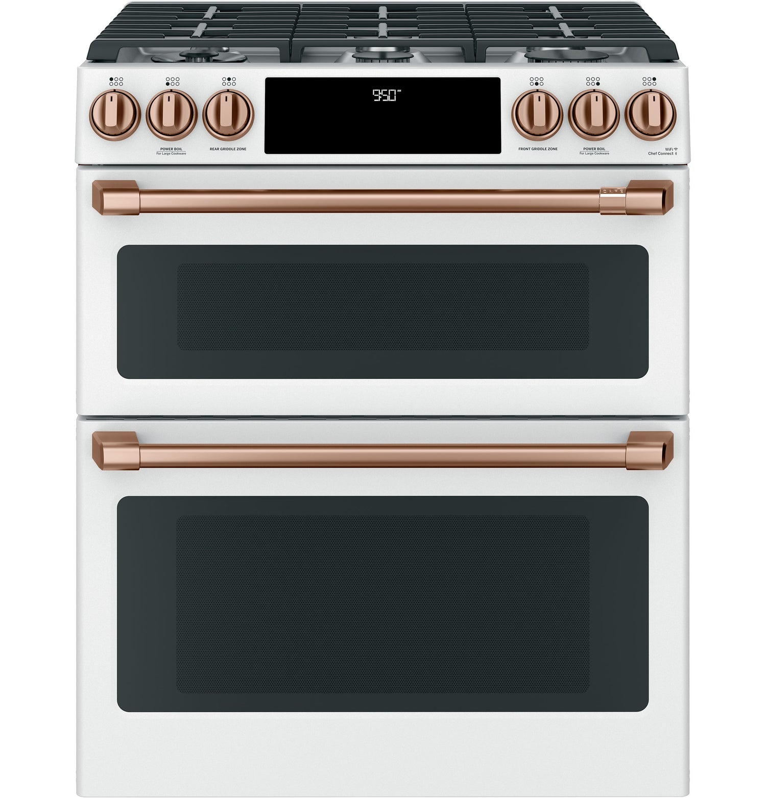 Caf(eback)(TM) 30" Smart Slide-In, Front-Control, Dual-Fuel, Double-Oven Range with Convection - (C2S950P4MW2)