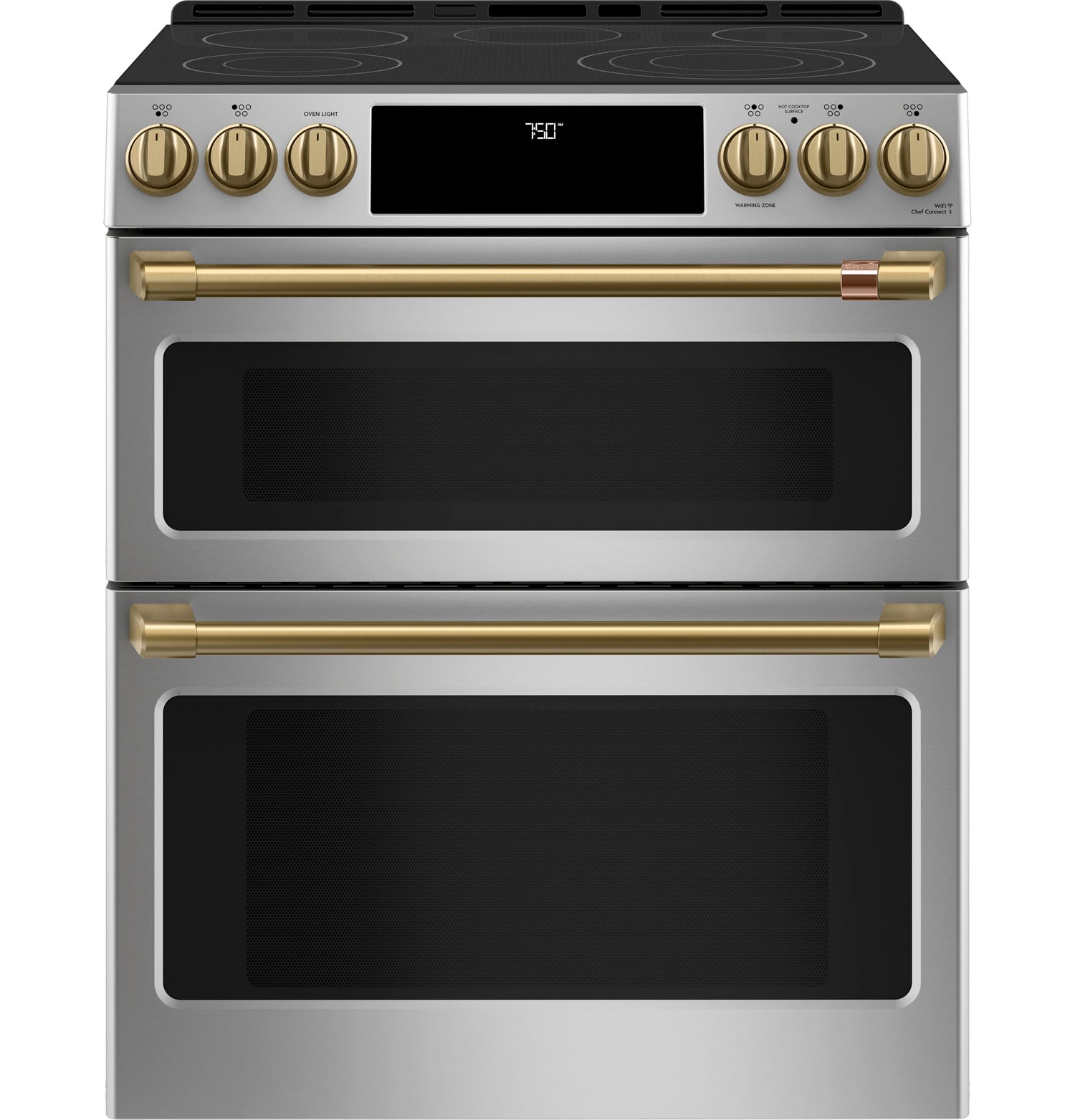 Caf(eback)(TM) 30" Smart Slide-In, Front-Control, Radiant and Convection Double-Oven Range - (CES750P2MS1) is backordered and will ship as soon as it is back in stock.
