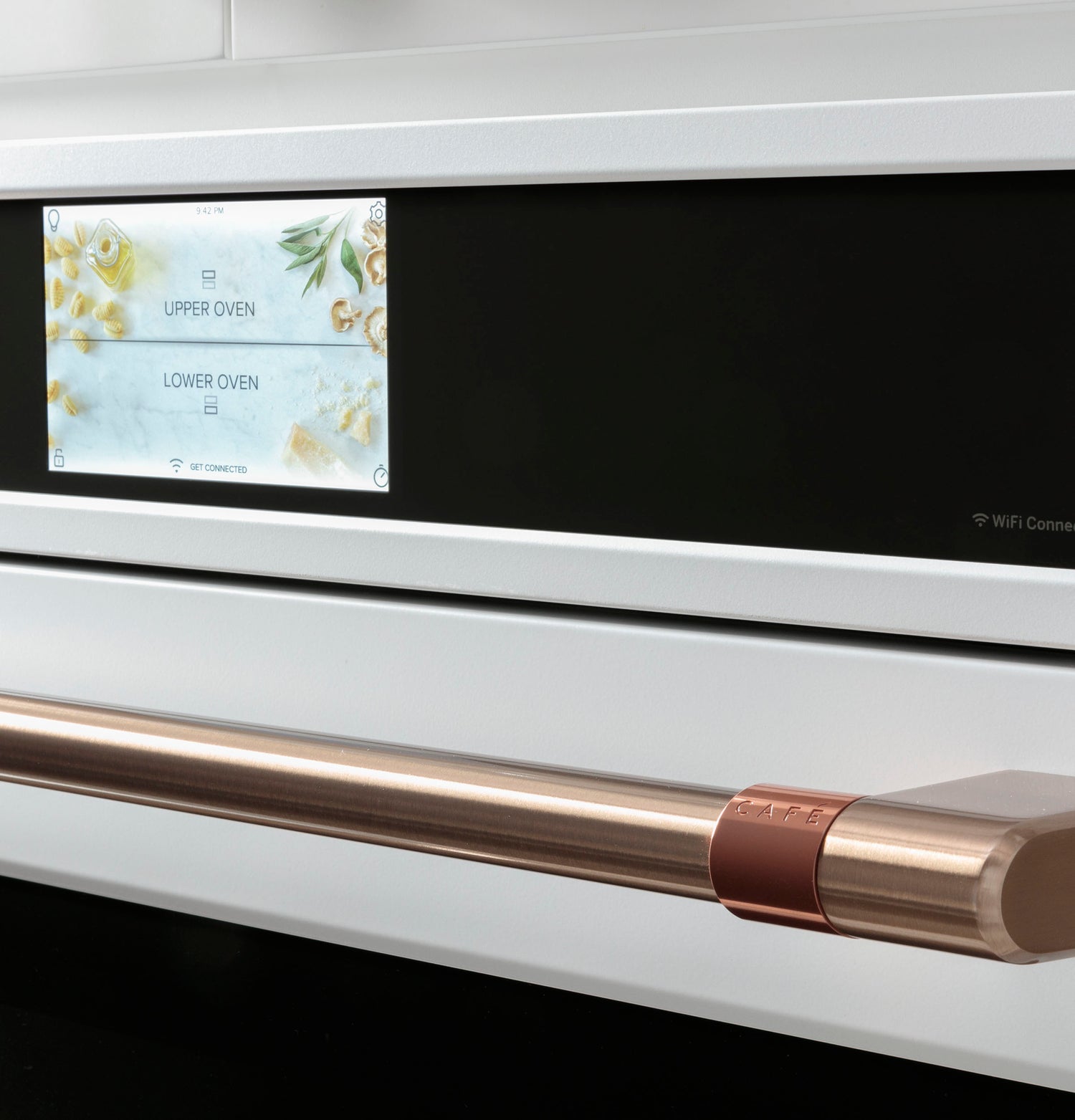 (P)This Caf(eback) Double Wall Oven celebrates style and performance with curated details that make cooking for a crowd a total delight. No Preheat Air Fry and a Dehydrate Setting give you new ways to deliver stunning results, and an In-oven Camera lets you monitor your food s progress while you connect with family and friends outside the kitchen. Precision Cooking Modes and a temperature probe are your secret ingredients for every meal, guaranteeing exact results so you know each dish will be a crowd pleaser. When it comes to clean up, smooth-gliding racks can be left in the oven during the Self-Clean cycle and a Steam Clean option is perfect for wiping up messes after each meal. Plus, it comes in countless combinations of finishes and hardware, to create a look as unique as you are.(/P)