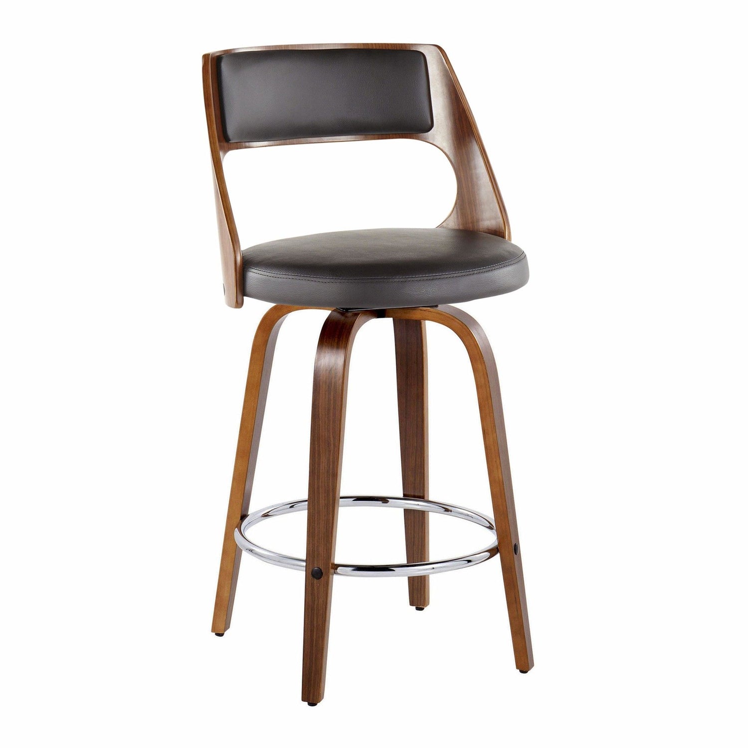 Cecina - 26" Fixed-Height Counter Stool With Swivel And Round Chrome Metal Footrest (Set of 2) - Walnut Wood - Dark Brown is backordered and will ship as soon as it is back in stock.