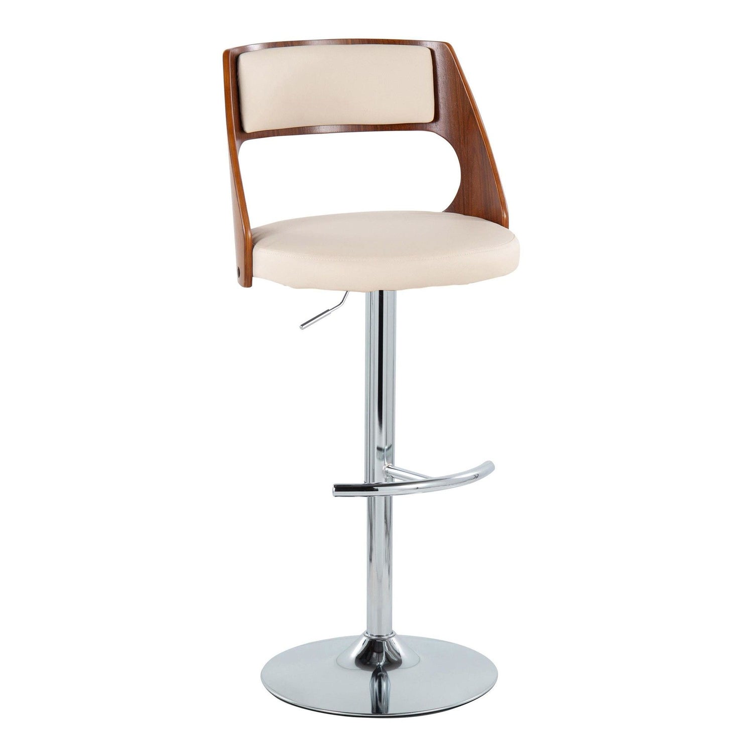 Cecina - Adjustable Barstool With Swivel And Rounded T Footrest (Set of 2) - Chrome Metal, Walnut Wood, And Cream Faux Leather