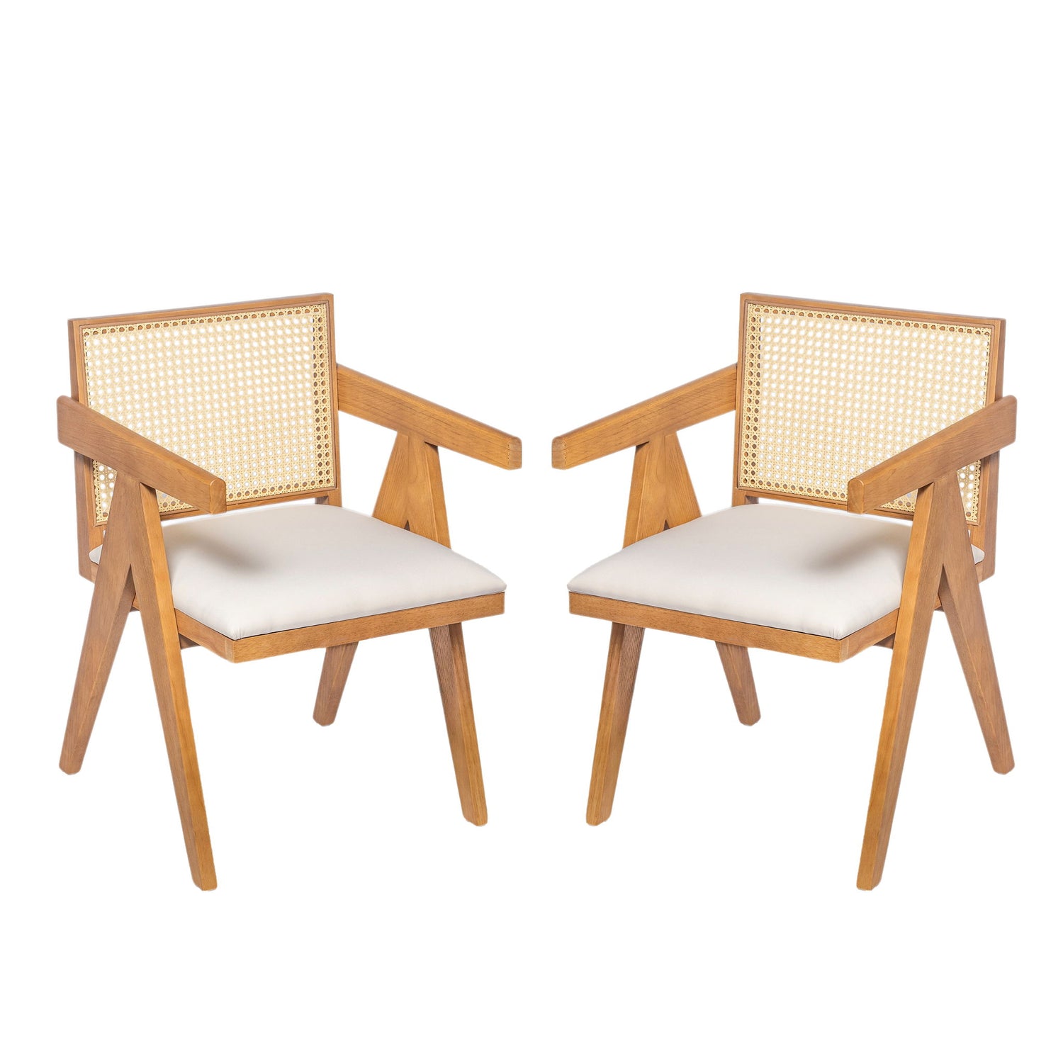 Chandigarh - Farmhouse Style Cane Upholstered Dining Chairs (Set of 2) - Natural / Beige
