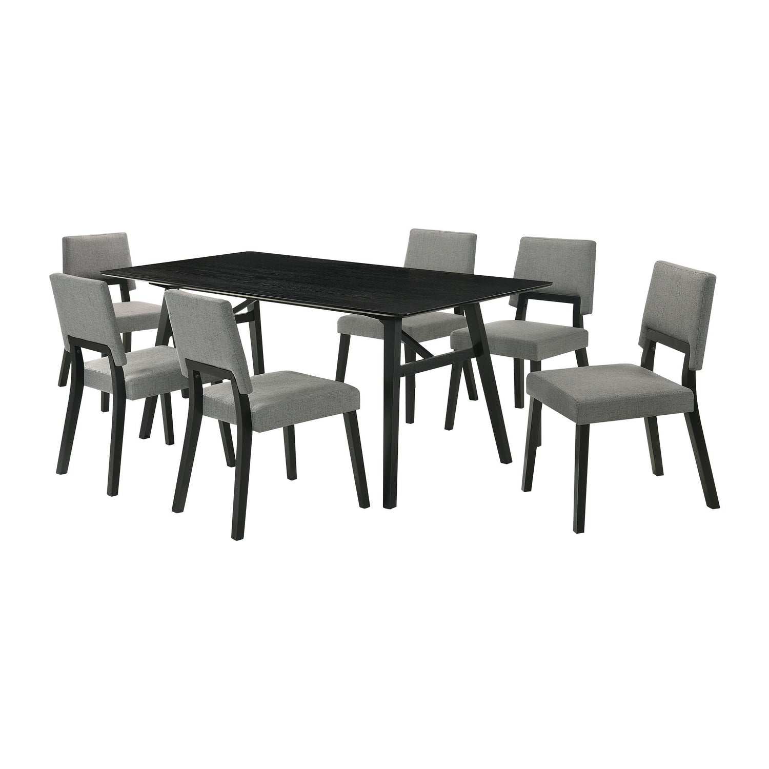 Channell - 7 Piece Black Wood Dining Table Set - Charcoal