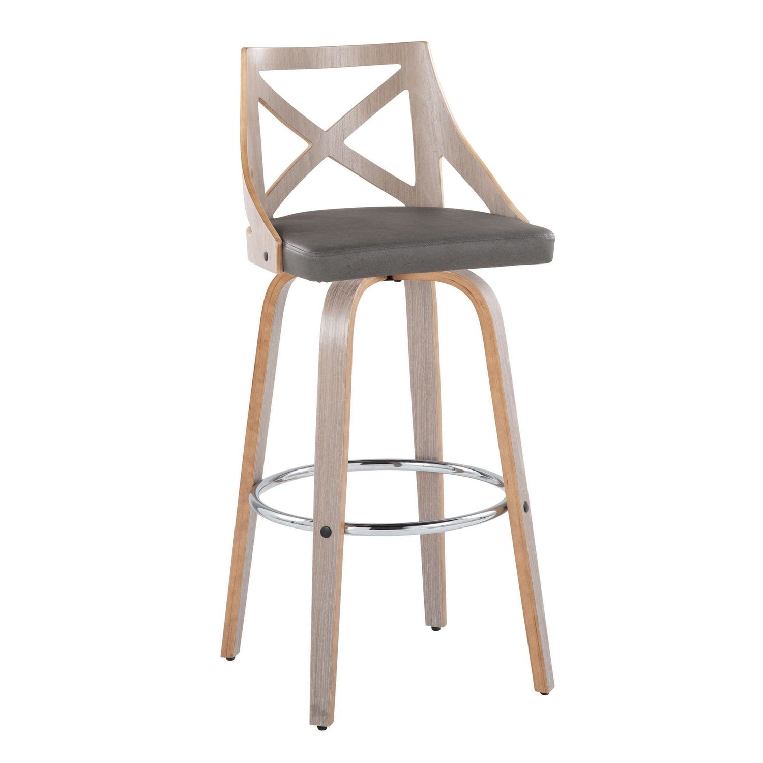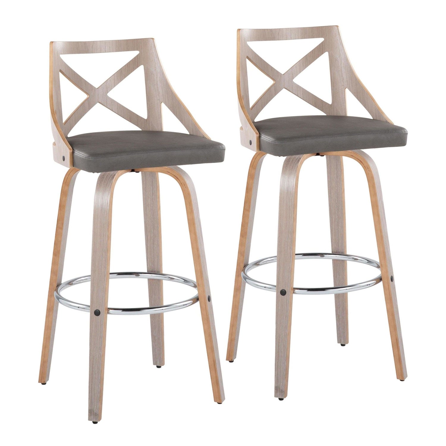 Charlotte - Fixed-Height Barstool (Set of 2) - Whitewashed Wood, White Faux Leather, Chrome Metal