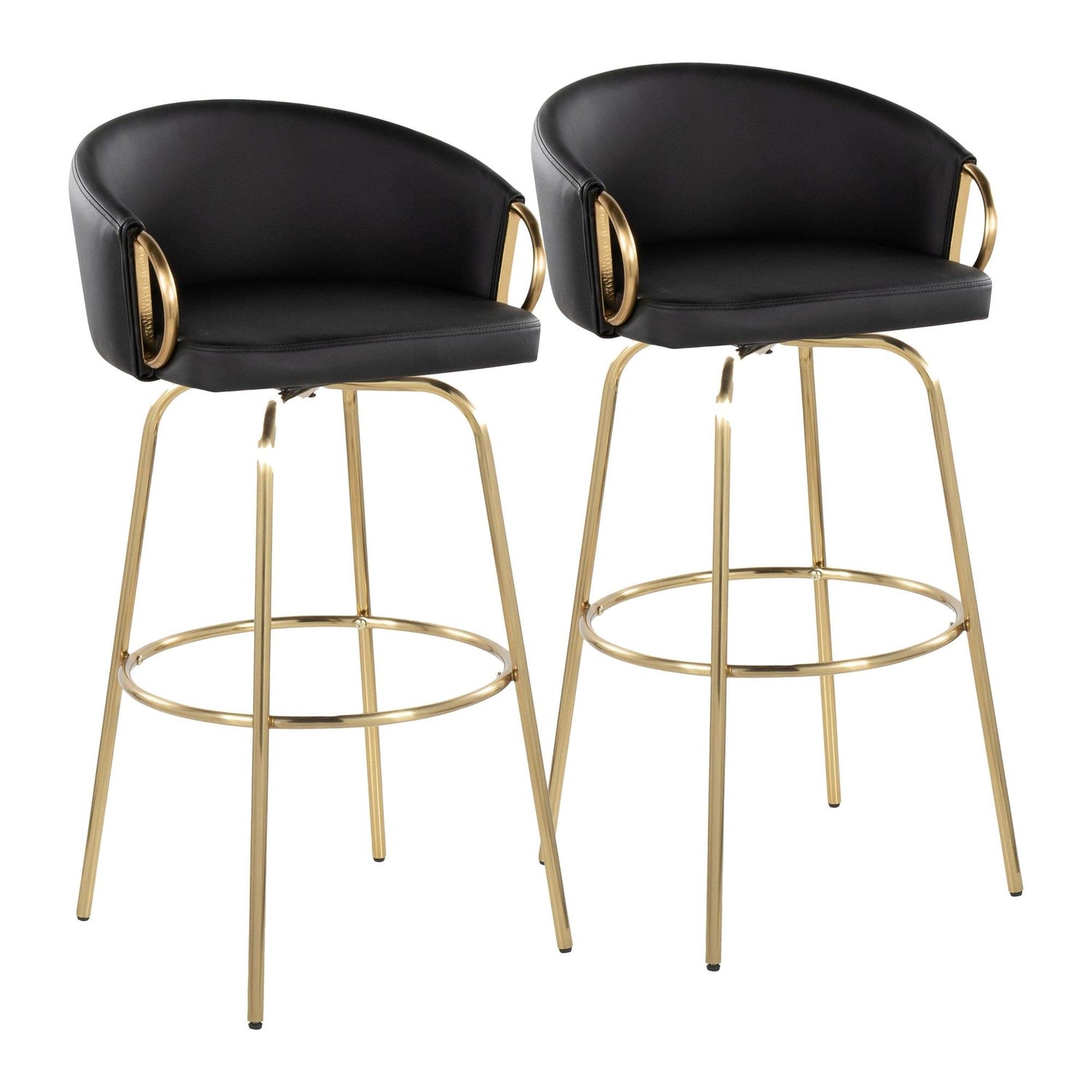Claire - 30" Fixed-Height Barstool With Swivel And Round Gold Metal Footrest (Set of 2) - Gold Metal And Black Faux Leather