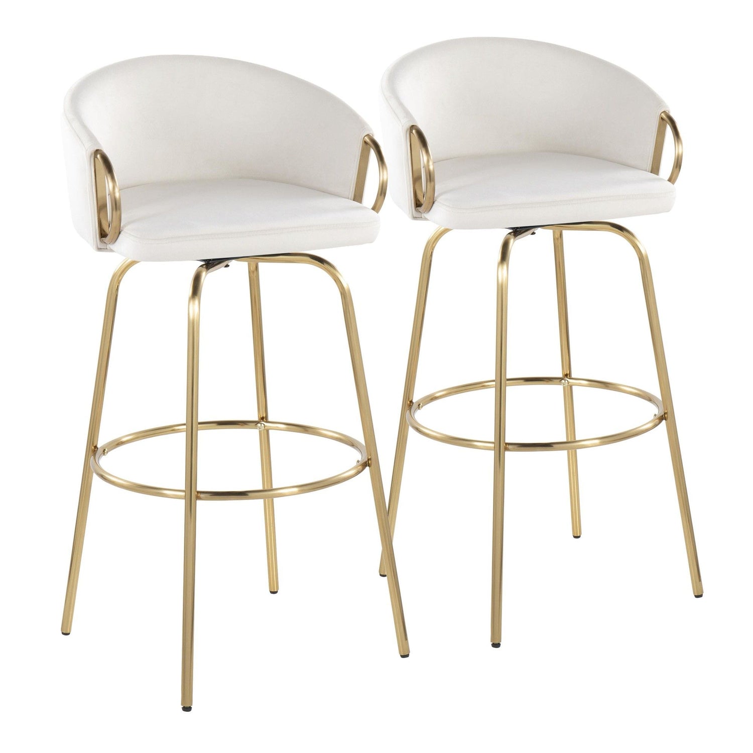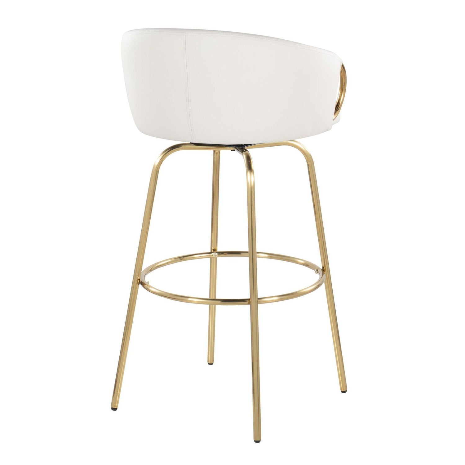 Claire - 30" Fixed-Height Barstool With Swivel And Round Gold Metal Footrest (Set of 2) - Gold Metal And White Faux Leather