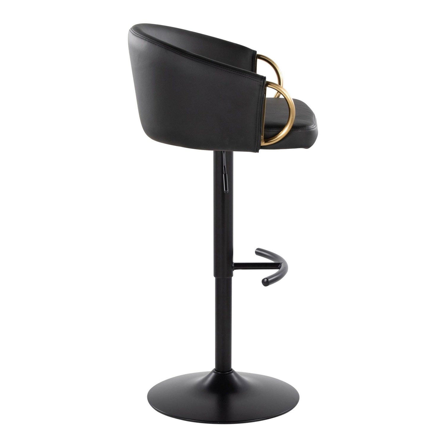Claire - Adjustable Barstool With Rounded T Footrest (Set of 2) - Black Metal And Black Faux Leather With Gold Metal Accent