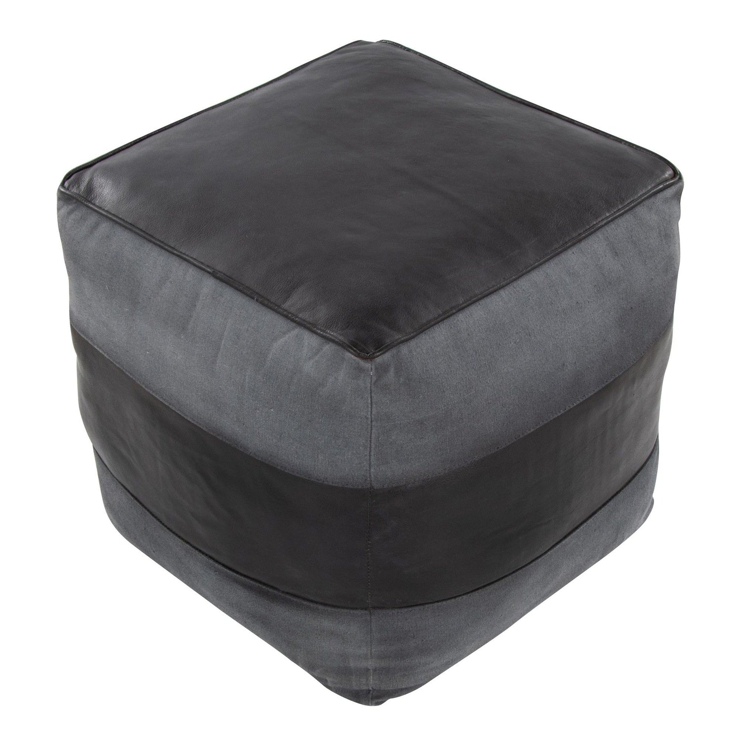 Cobbler - Canvas Pouf - Black Leather And Gray Canvas