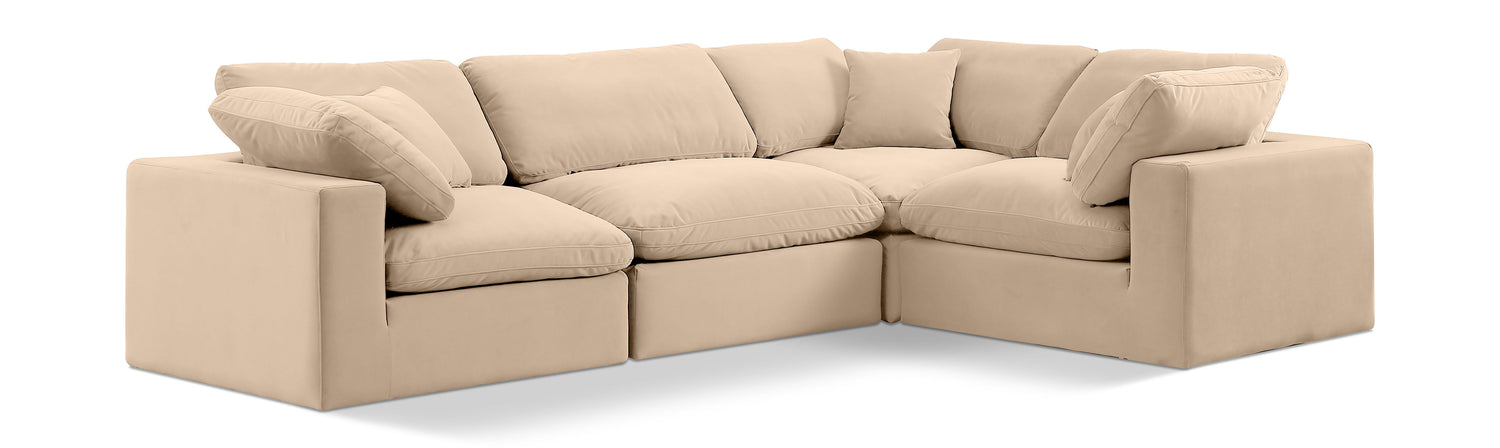 Comfy - 4 Piece Velvet Modular Sectional - Light Beige