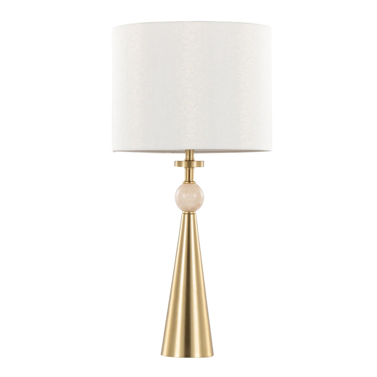 Cone - Travertine Table Lamp (Set of 2) - Gold Metal, Travertine, White Shimmer Shade