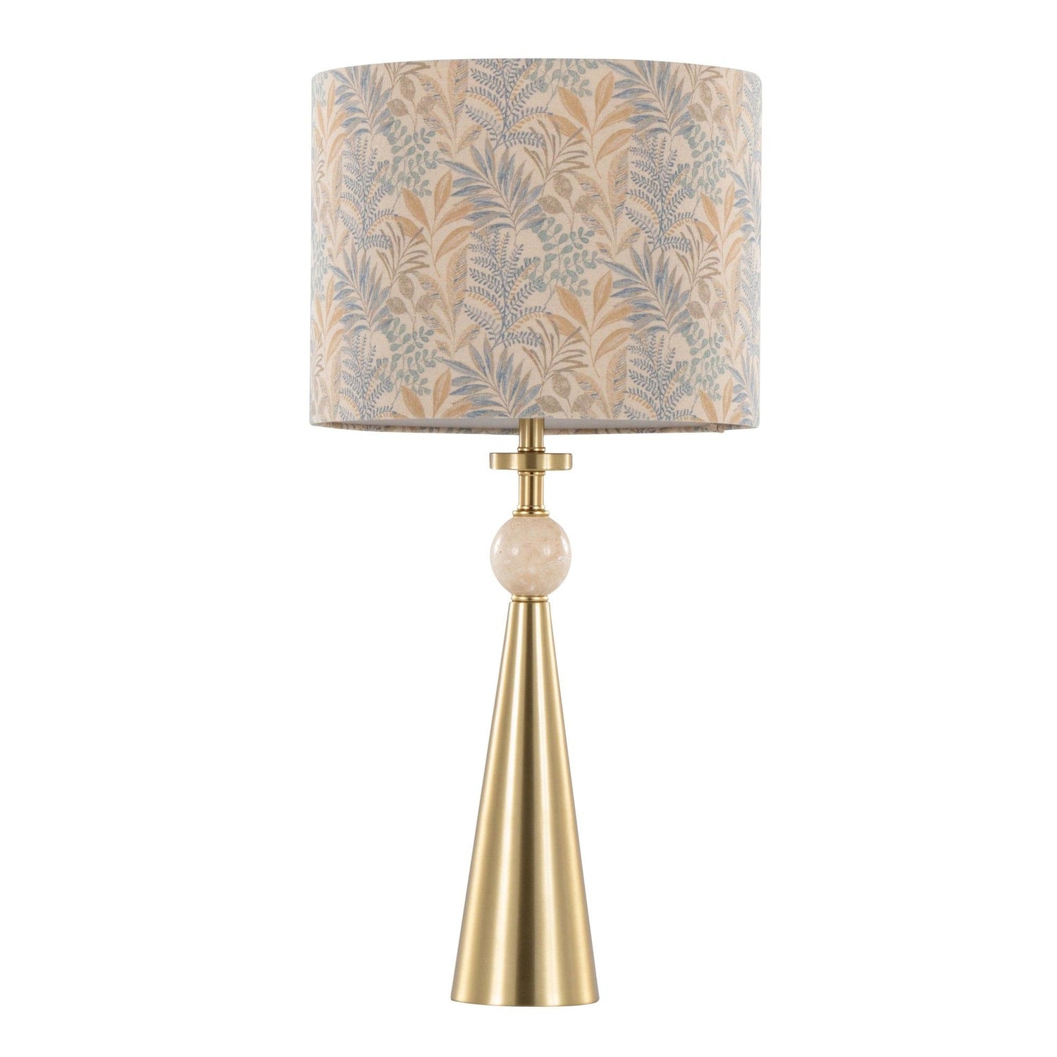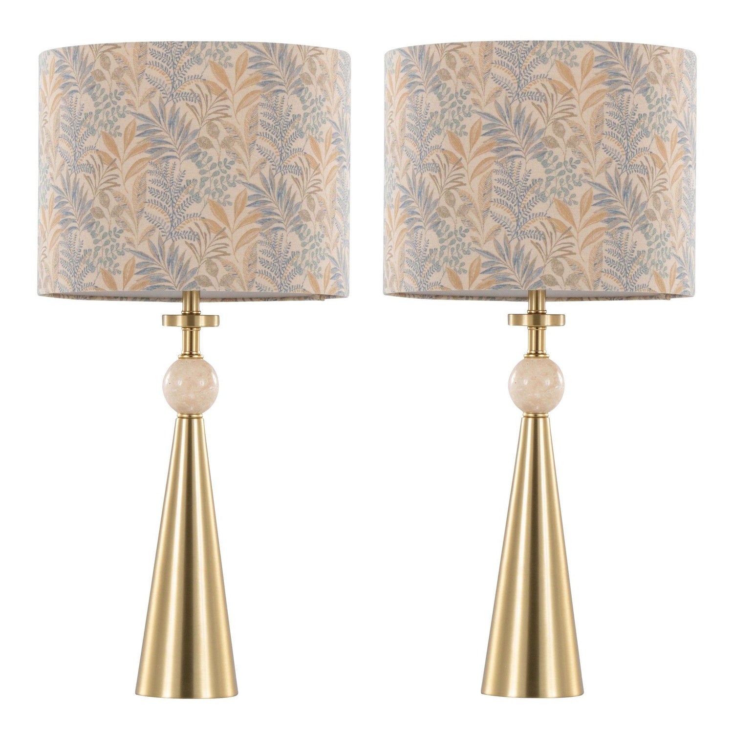 Cone - Travertine Table Lamp (Set of 2) - Gold Metal, Travertine, Tan Leaf Shade