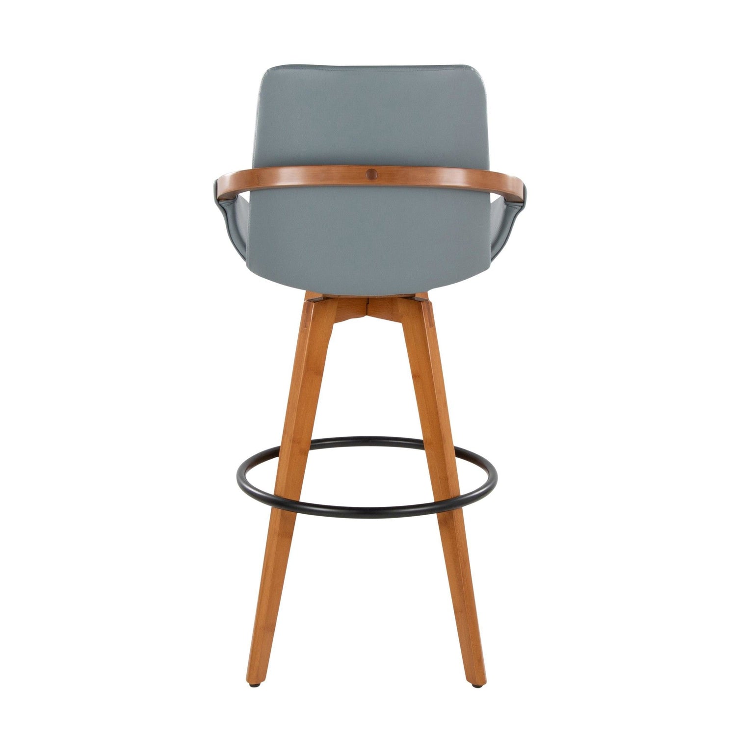 Cosmo - 29" Fixed-Height Barstool With Swivel - Walnut Bamboo And Gray Faux Leather With Round Black Metal Footrest