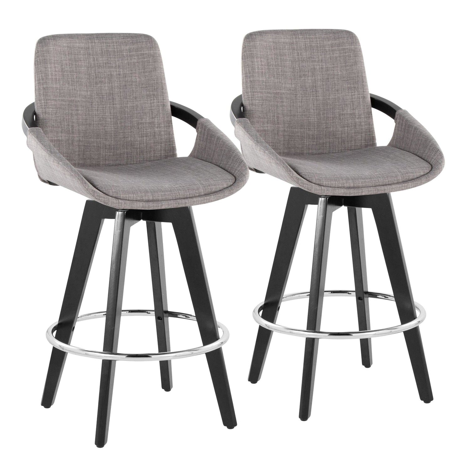 Cosmo - Fixed-Height Counter Stool (Set of 2) - Black Wood, Gray Fabric, Chrome Metal