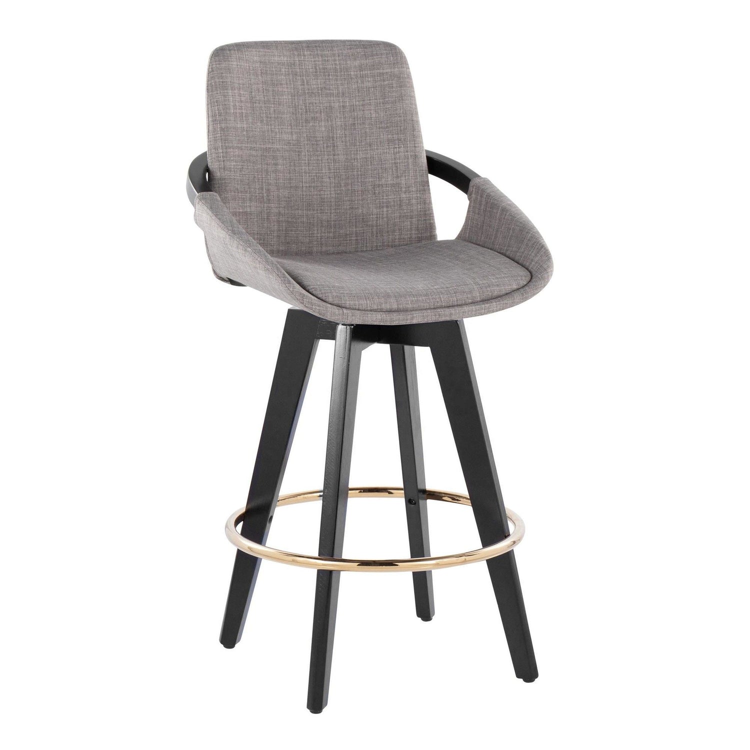 Cosmo - Fixed-Height Counter Stool (Set of 2) - Black Wood, Gray Fabric, Gold Metal