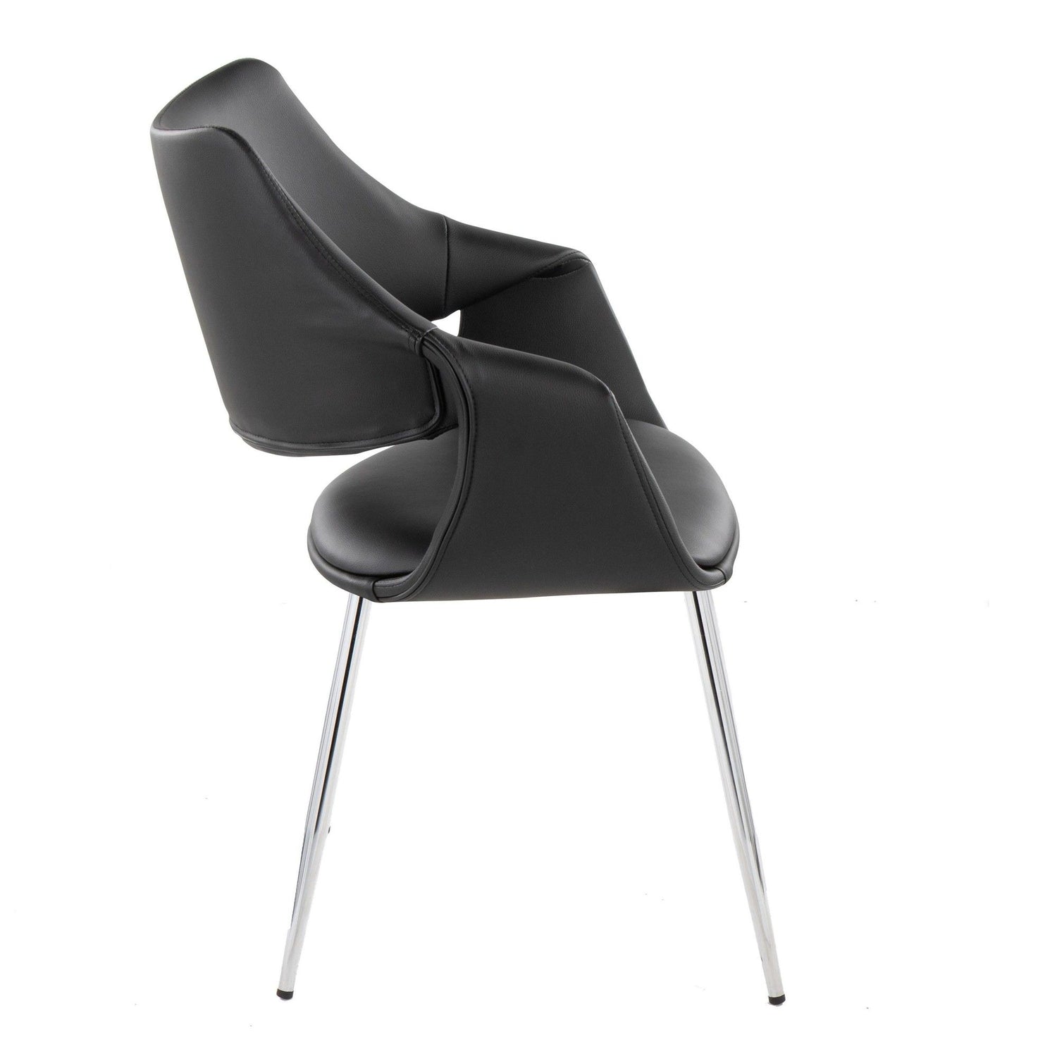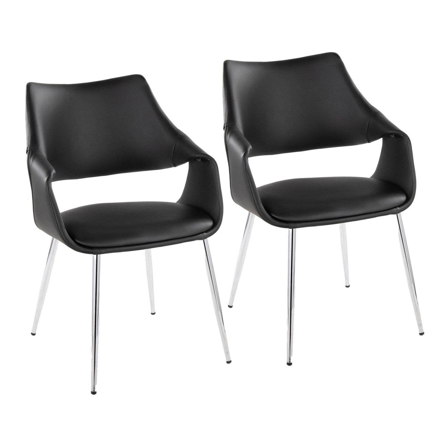 Curvo - High Back Upholstered Chair (Set of 2) - Chrome Metal, Black Faux Leather