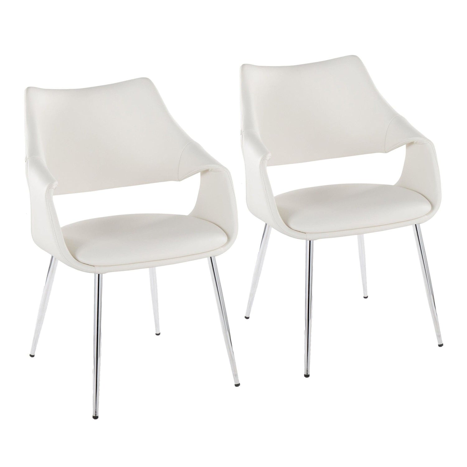 Curvo - High Back Upholstered Chair (Set of 2) - Chrome Metal, White Faux Leather