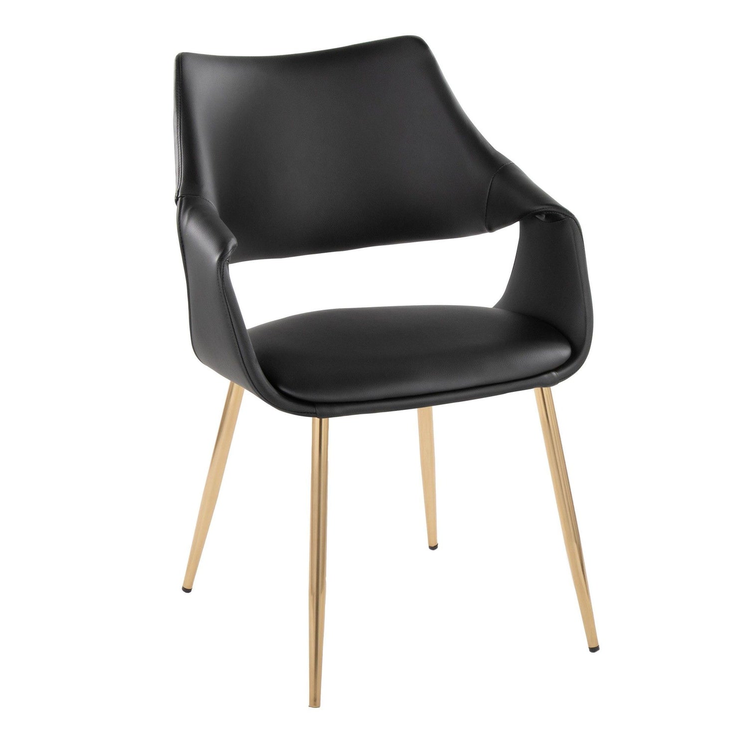 Curvo - High Back Upholstered Chair (Set of 2) - Gold Metal, Black Faux Leather