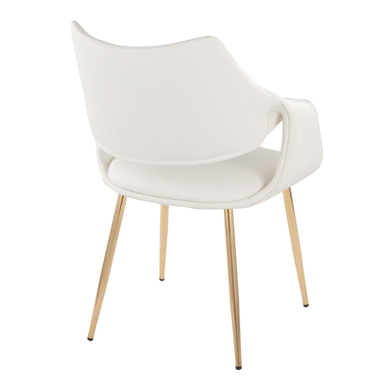 Curvo - High Back Upholstered Chair (Set of 2) - Gold Metal, White Faux Leather