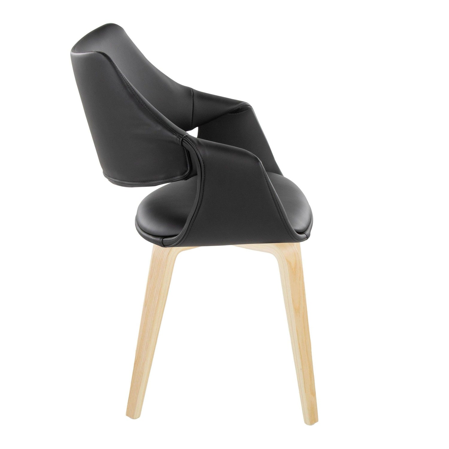 Curvo - High Back Upholstered Chair (Set of 2) - Natural Wood, Black Faux Leather