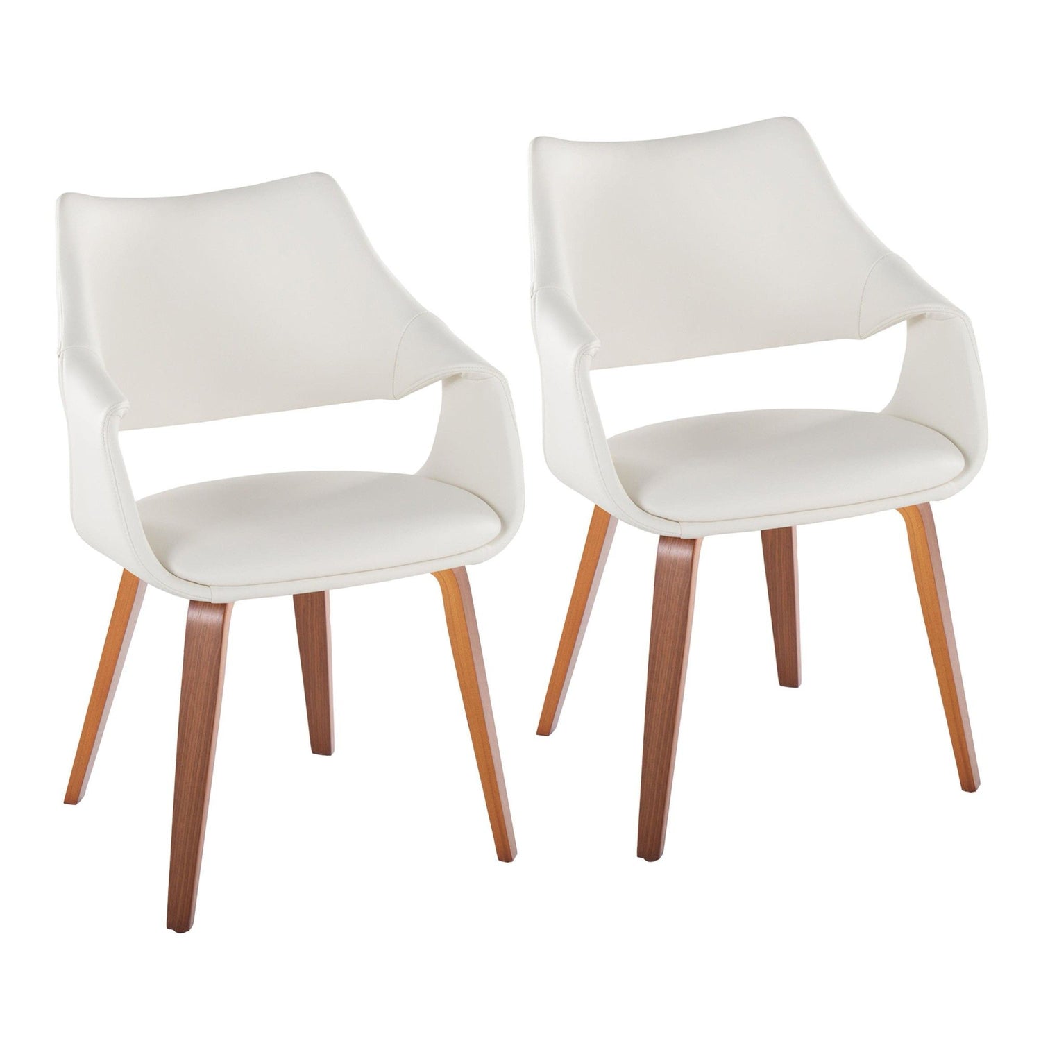 Curvo - High Back Upholstered Chair (Set of 2) - Walnut Wood, White Faux Leather