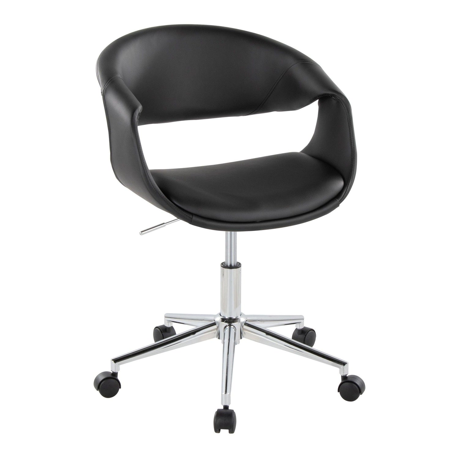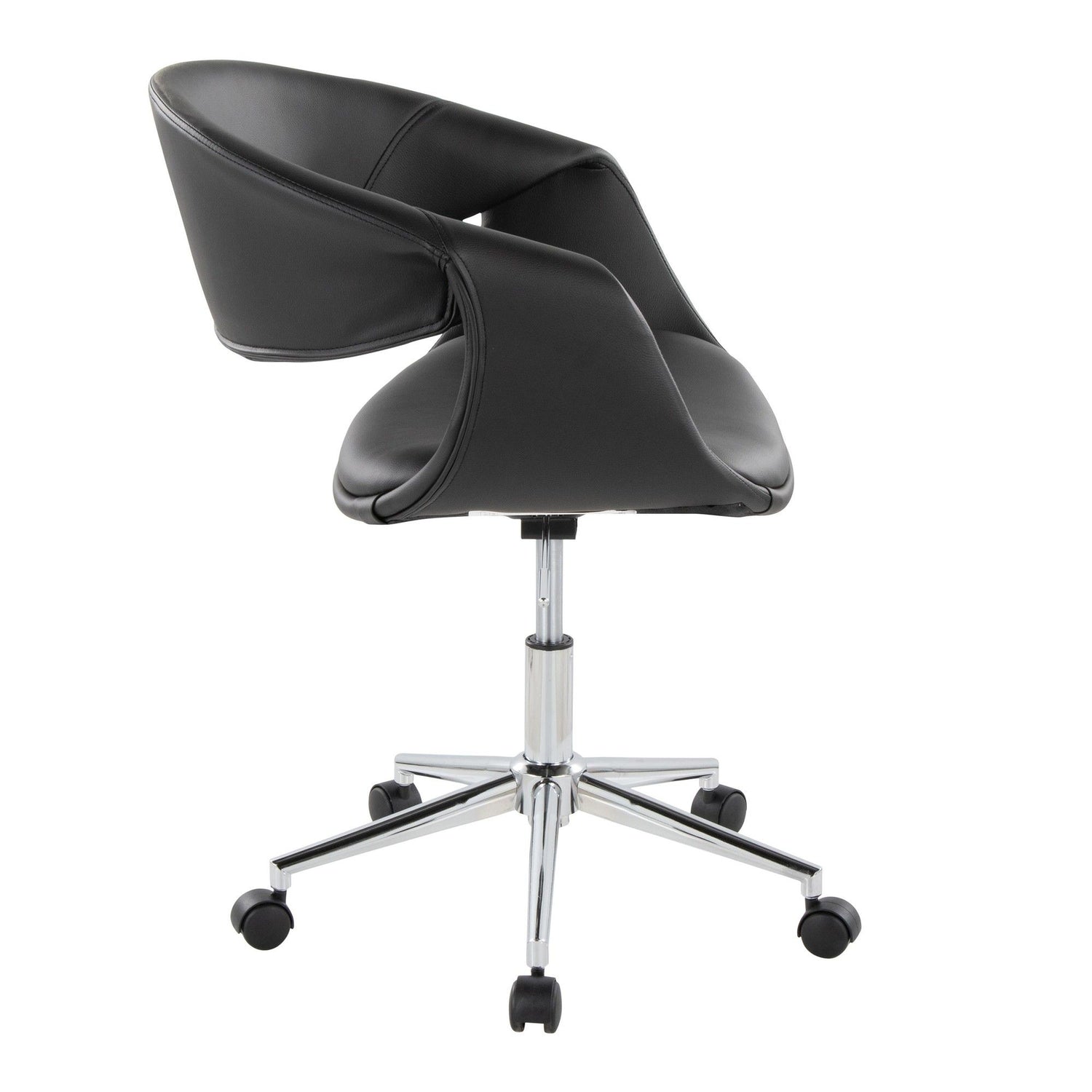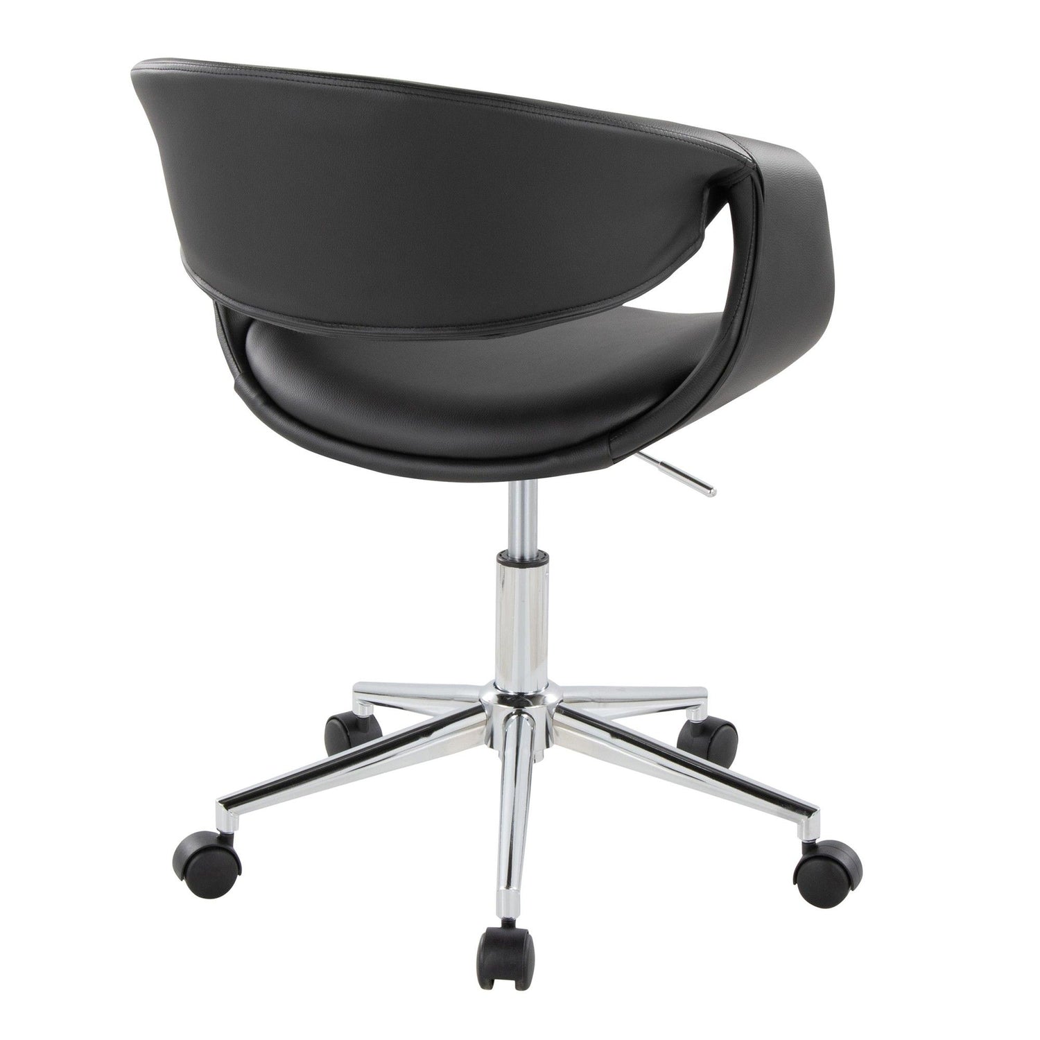 Curvo - Upholstered 5-star Task Chair - Chrome Metal, Black Faux Leather
