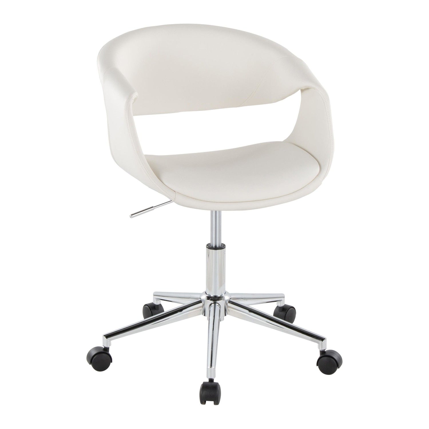 Curvo - Upholstered 5-star Task Chair - Chrome Metal, White Faux Leather