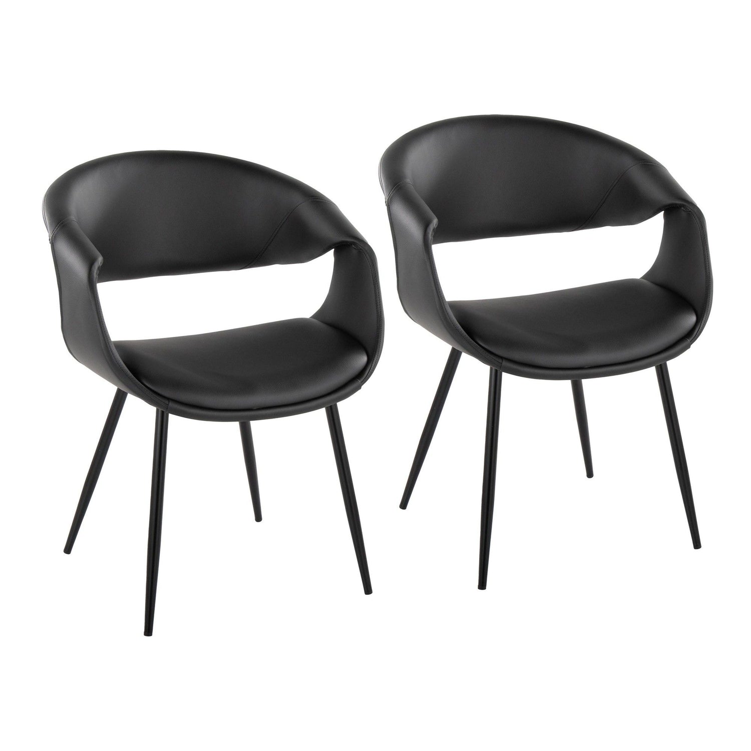 Curvo - Upholstered Chair (Set of 2) - Black Metal, Black Faux Leather