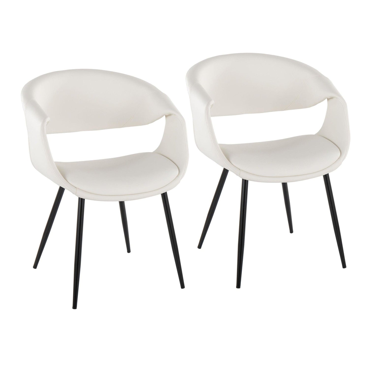 Curvo - Upholstered Chair (Set of 2) - Black Metal, White Faux Leather