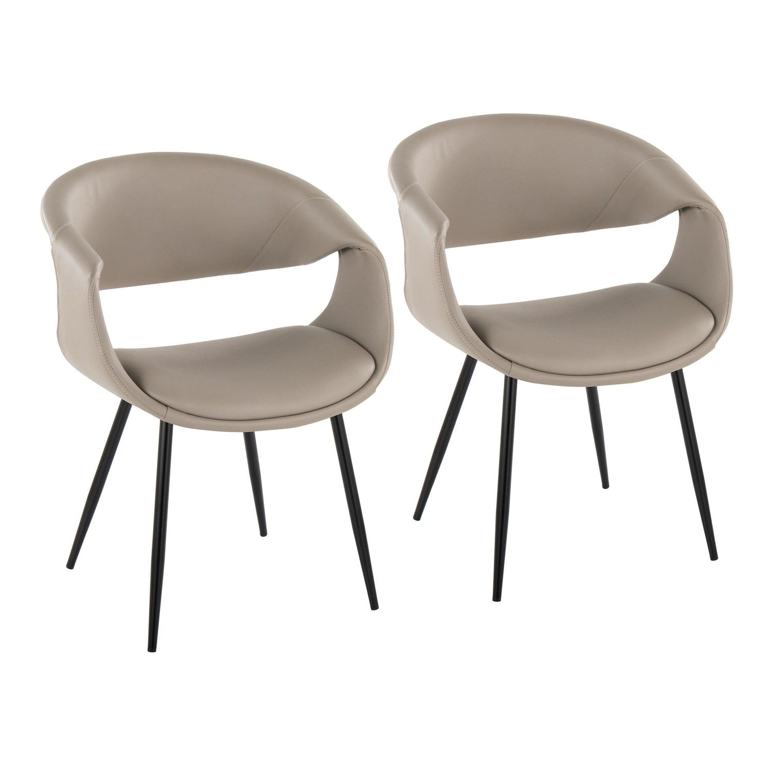 Curvo - Upholstered Chair (Set of 2) - Black Metal, Light Gray Faux Leather