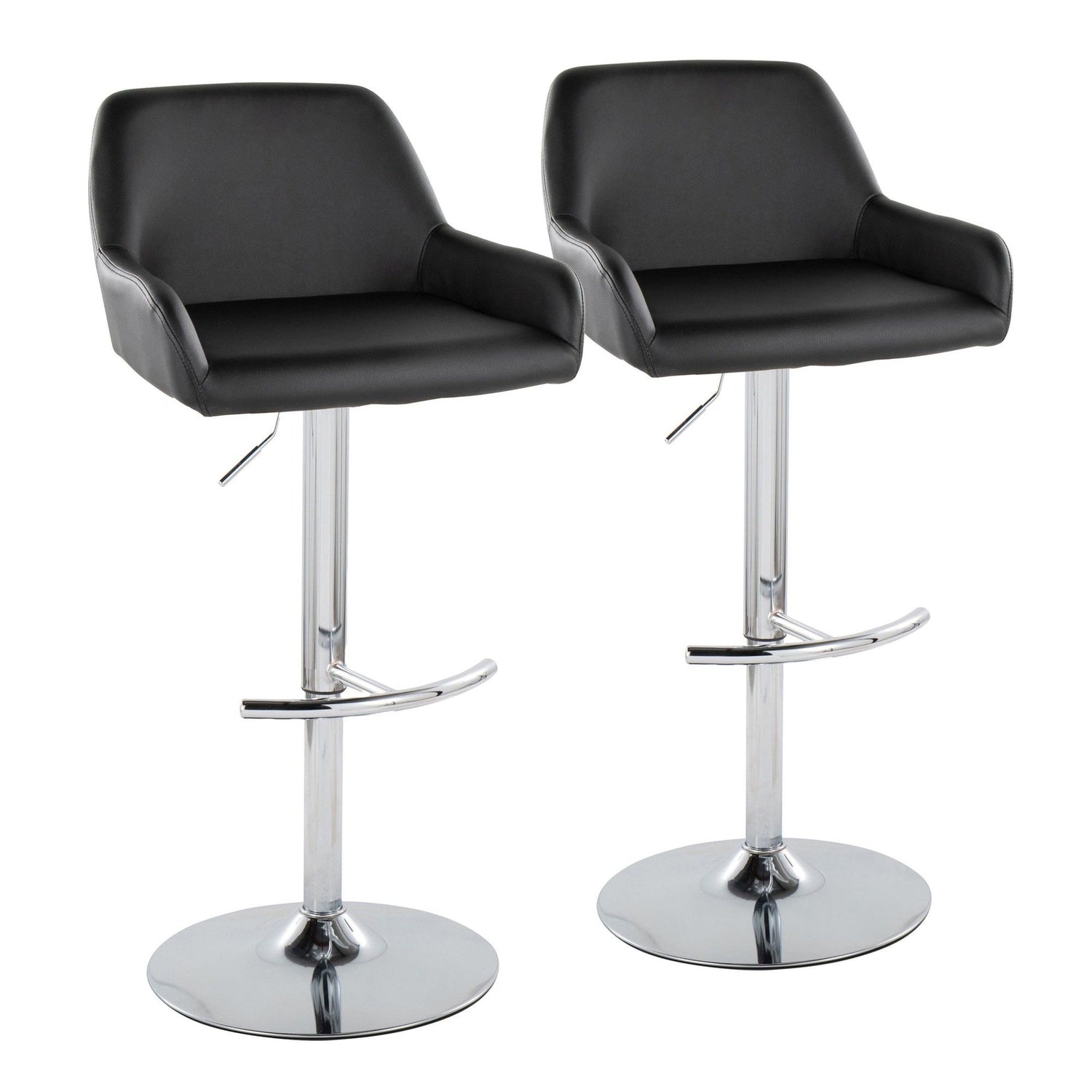 Daniella - Adjustable Barstool With Rounded T Footrest (Set of 2) - Chrome Metal And Black Faux Leather
