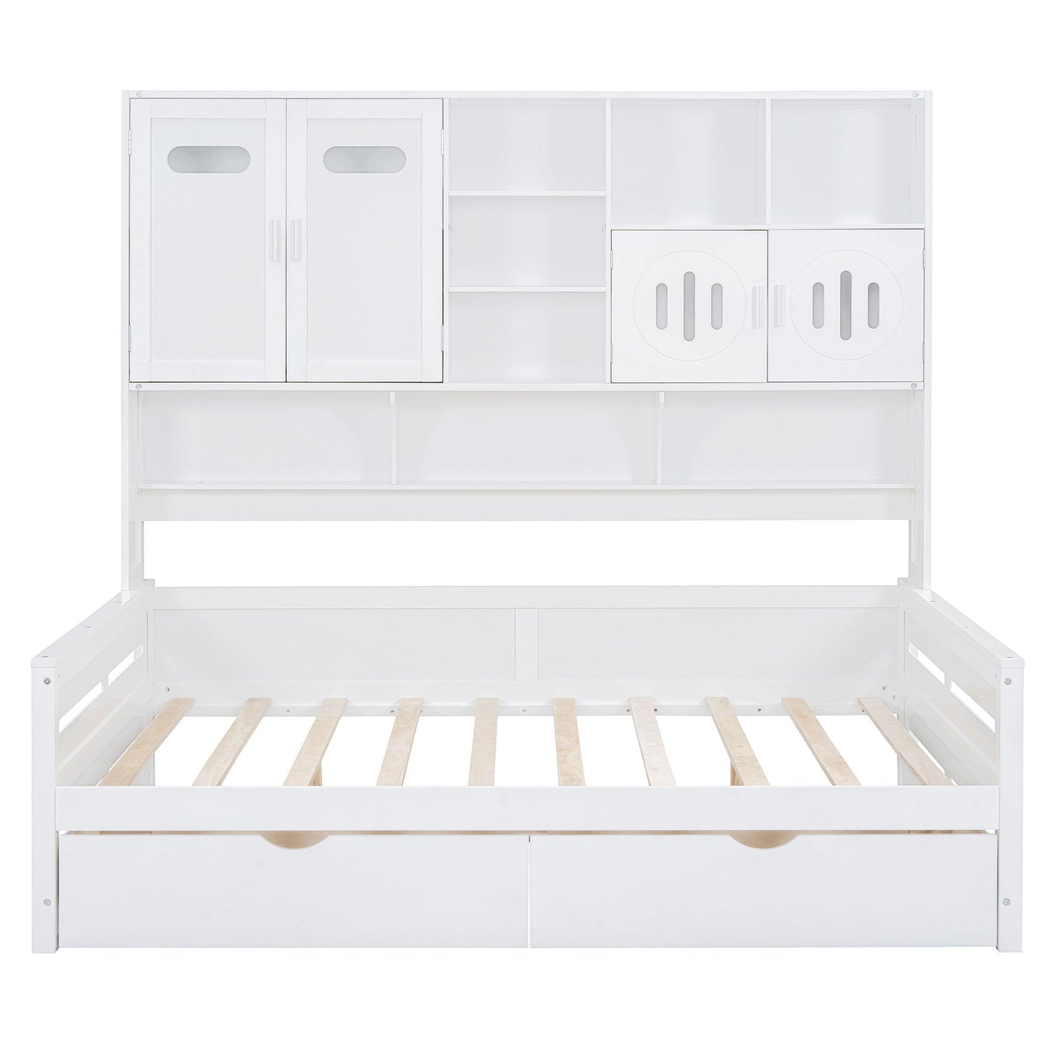 Full Size Daybed With 2 Drawers And All In One Cabinet And Shelf - White