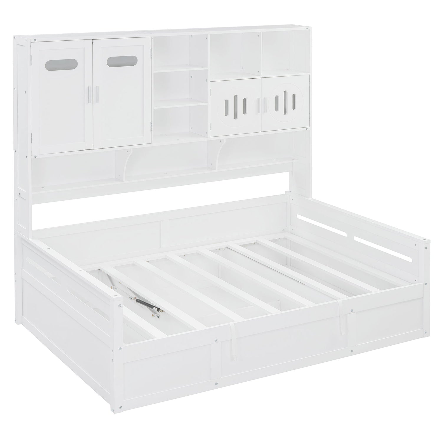 Full Size Wooden Daybed With Hydraulic Bed And All In One Cabinet And Shelf - White