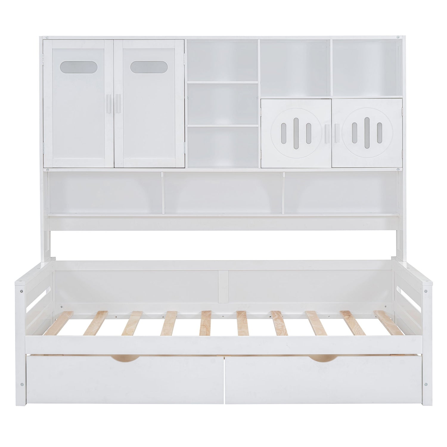 Twin Size Daybed With 2 Drawers And All In One Cabinet And Shelf - White