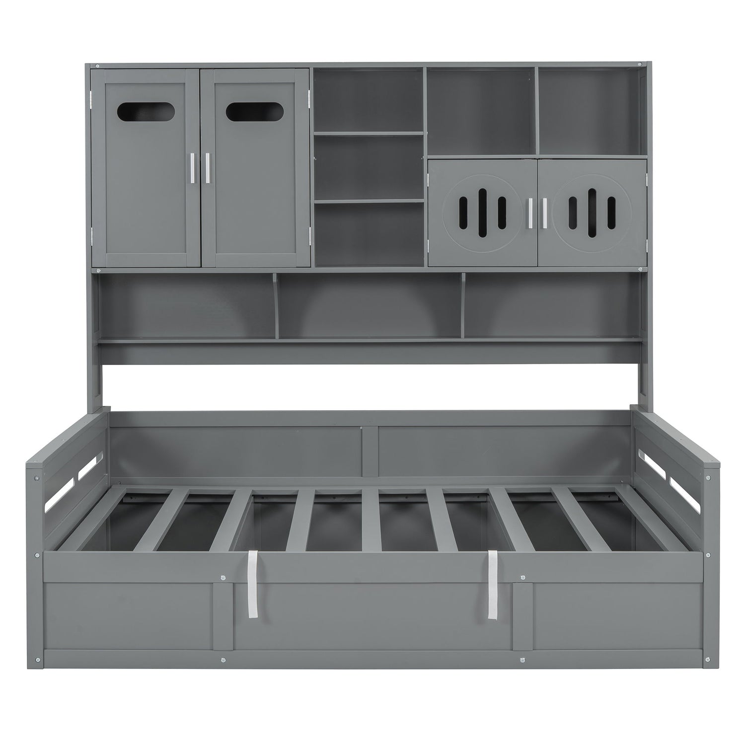 Twin Size Daybed With Twin Size Trundle, And All In One Cabinet And Shelf - Gray