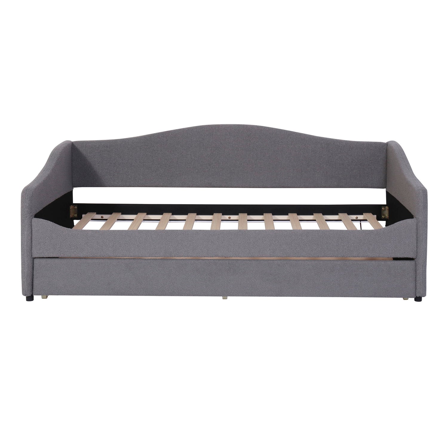 Twin Size Upholstered Daybed With Light And Trundle - Gray
