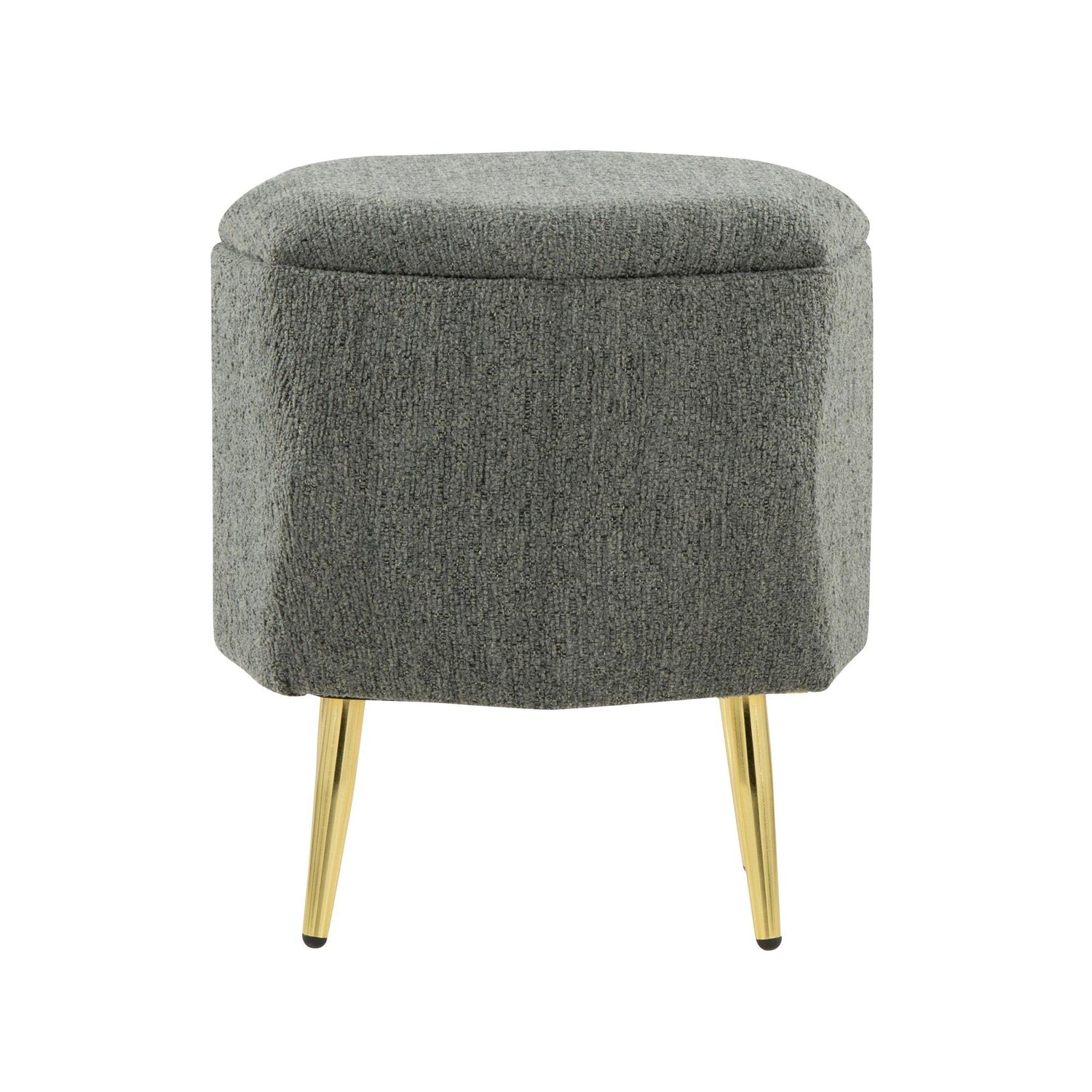 Diamond - Ottoman - Gold Metal, Light Gray Fabric