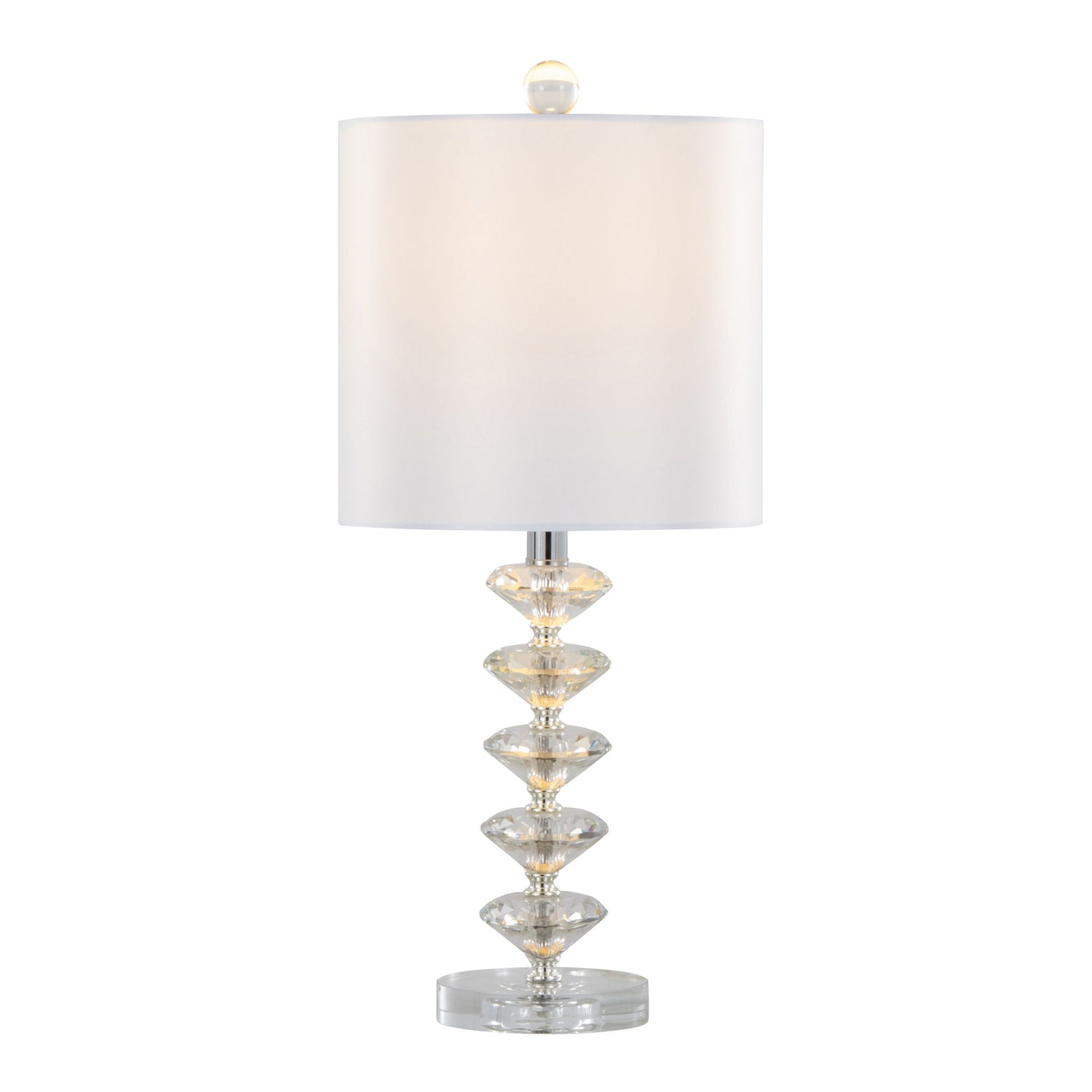 - Elegant Design: The Diamond Stacked Table Lamp features a stunning arrangement of five diamond-styled crystals, separated by polished chrome spacers, delivering a perfect mix of modern glamour and timeless sophistication.