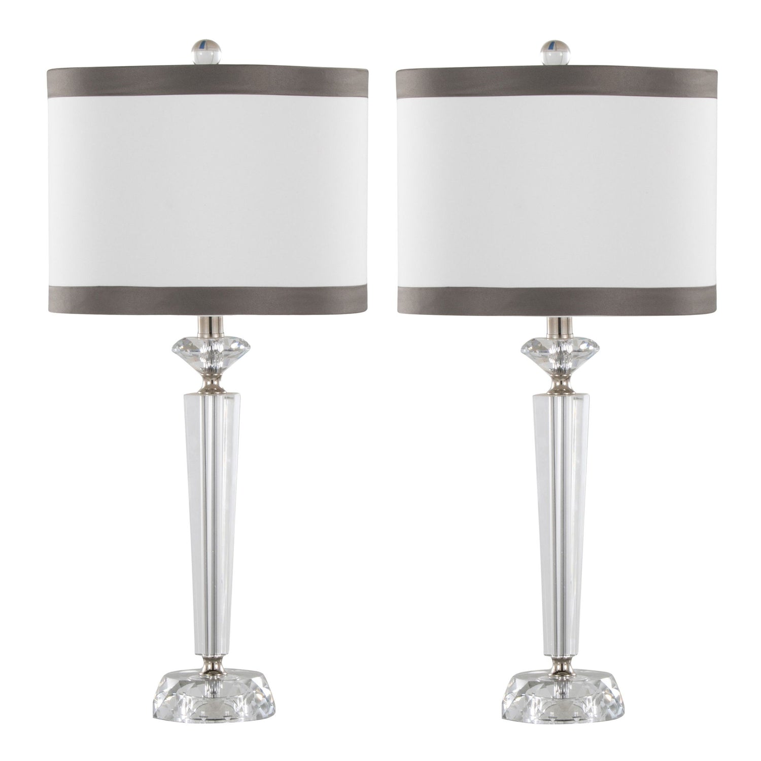 Diamond - Torch Crystal Contemporary Table Lamp (Set of 2) - Clear / Off White / Dark Gray / Polished Nickel