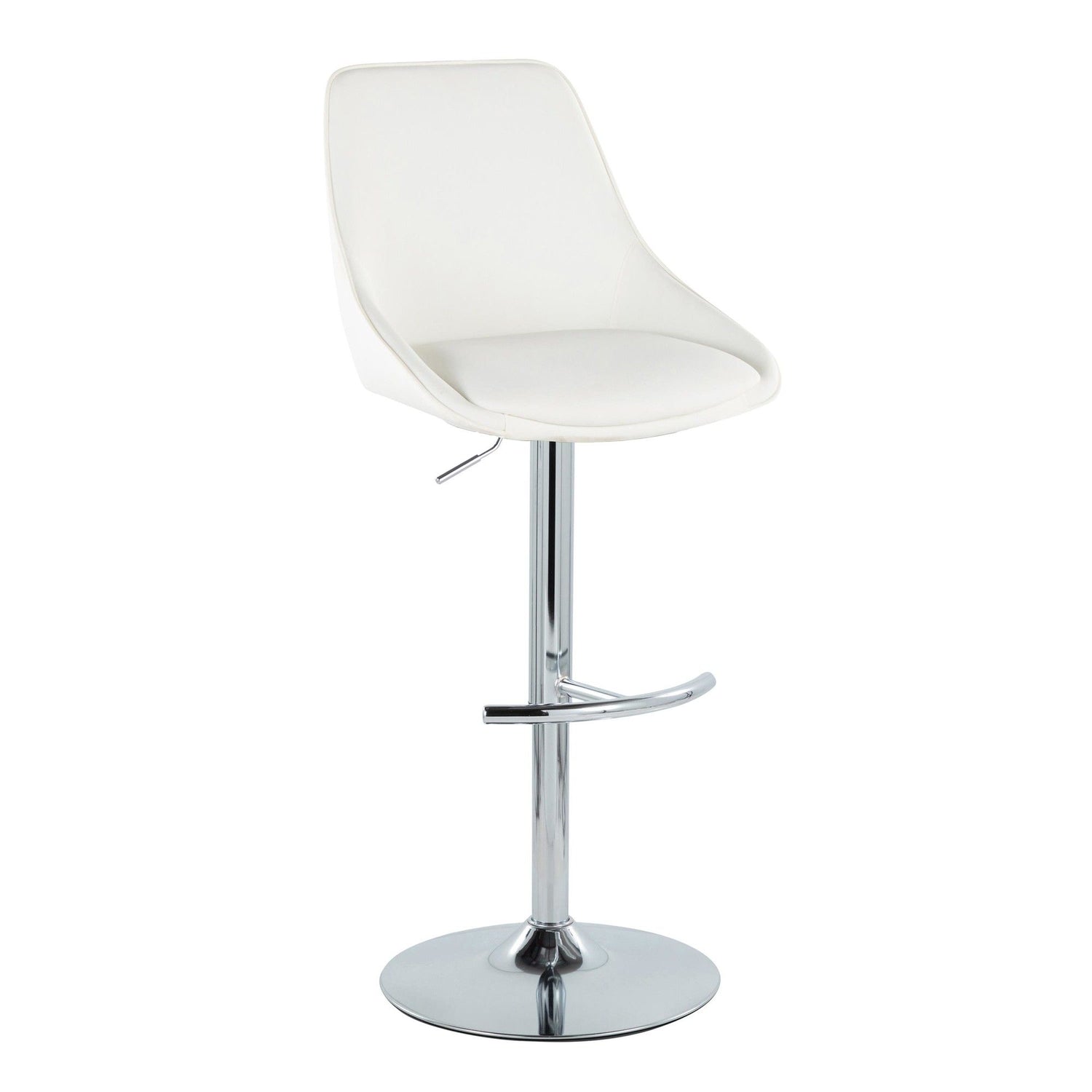 Diana - Adjustable Barstool With Rounded T Footrest (Set of 2) - Chrome Metal And White Faux Leather