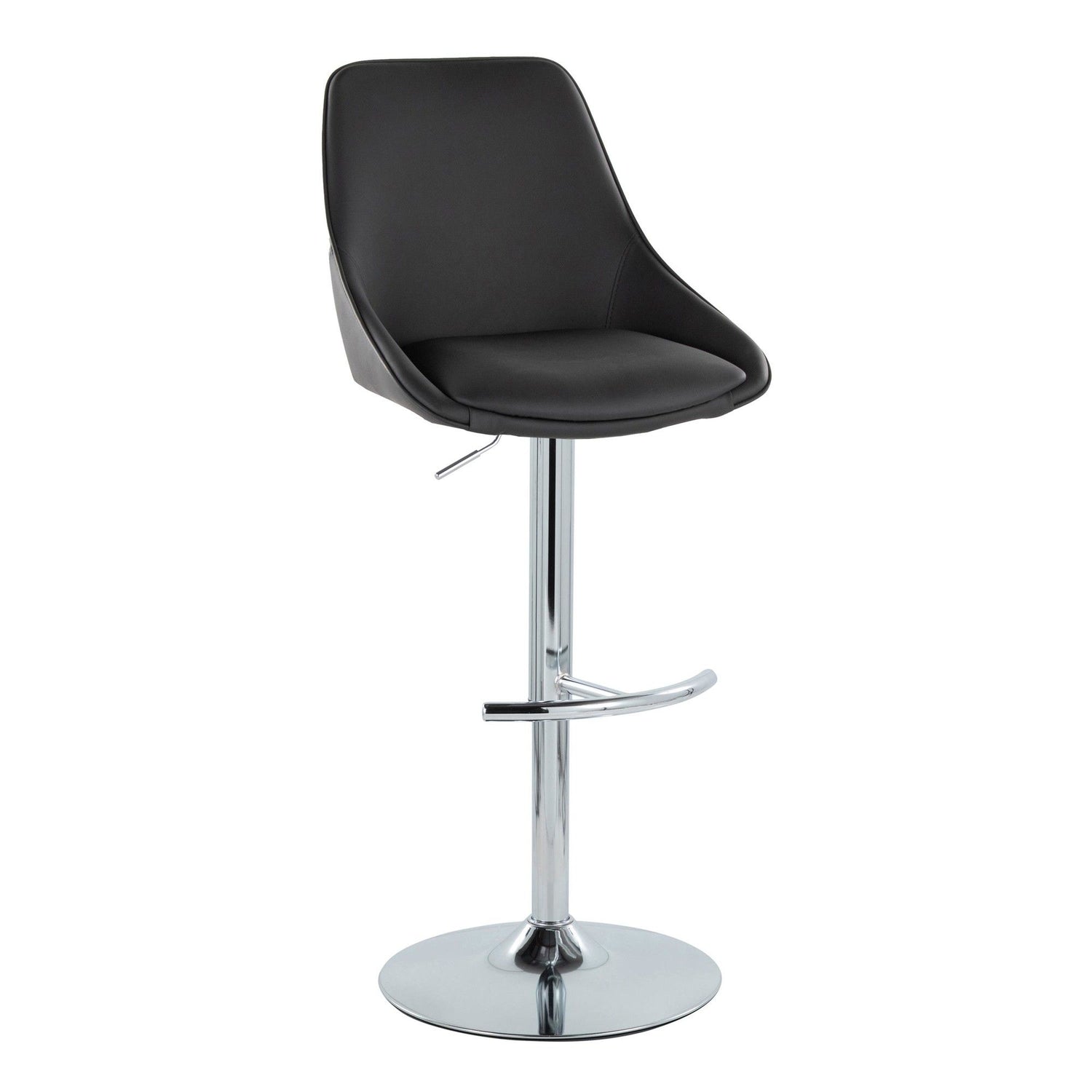 Diana - Adjustable Barstool With Rounded T Footrest (Set of 2) - Chrome Metal And Black Faux Leather