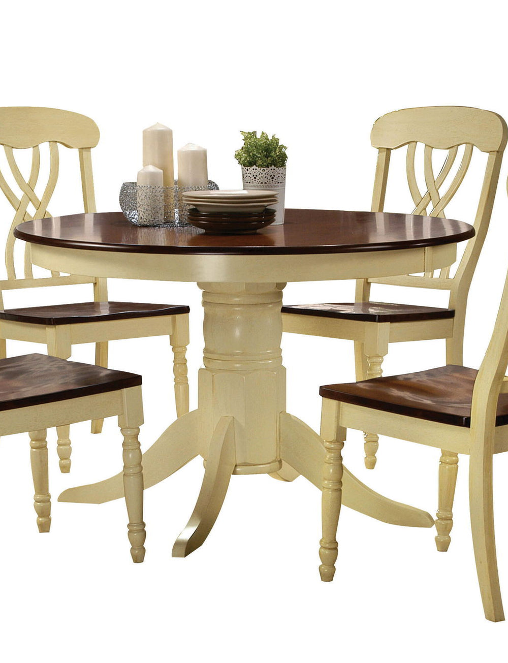 - Design: The table and chairs feature a buttermilk finish with wood turned details and an "XX" overlapped design on the open backrest, adding a touch of elegance and style to your dining room.