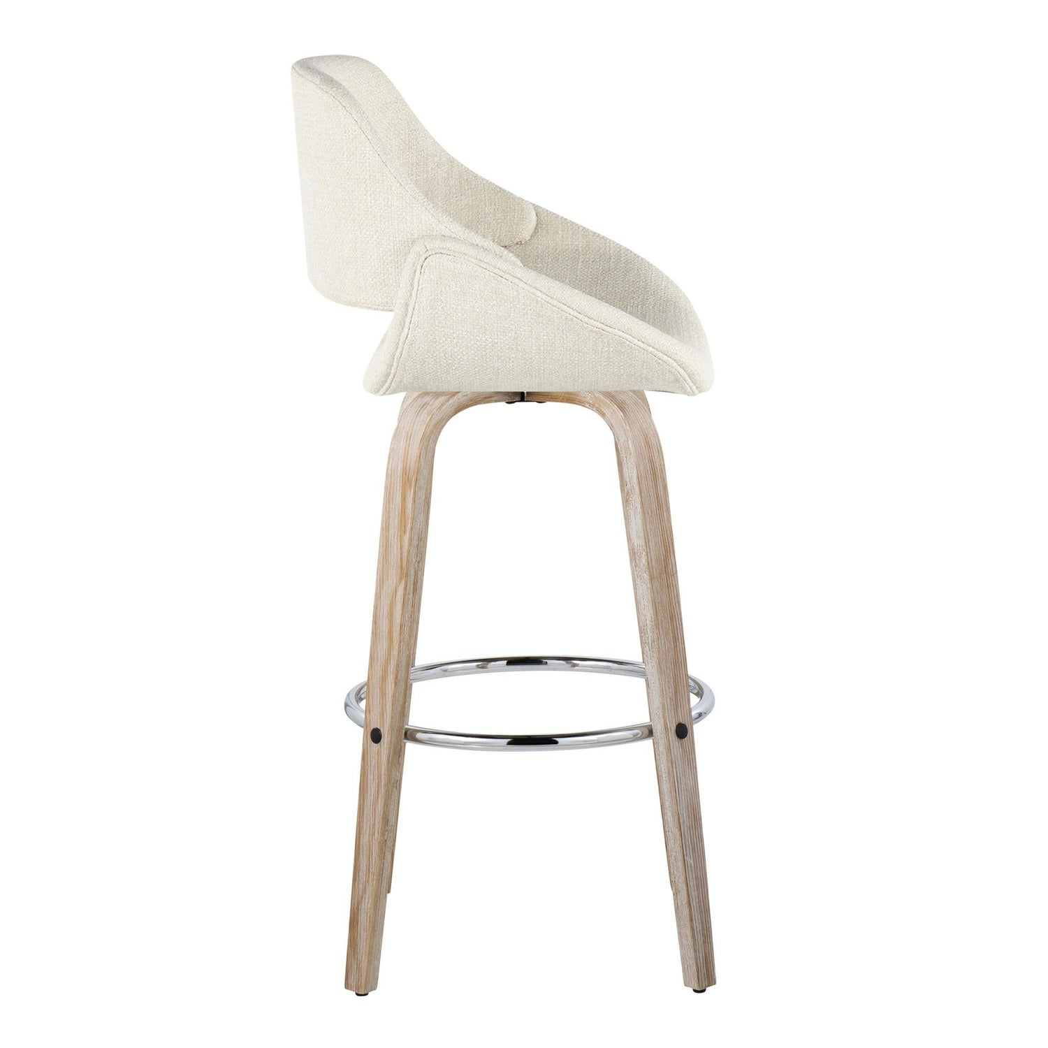 Fabrizzi - 30" Fixed-Height Barstool With Swivel And Round Chrome Metal Footrest (Set of 2) - White Washed Wood And Cream Noise Fabric is backordered and will ship as soon as it is back in stock.