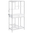 - White finish MDF and paper offers a bright ambiance in a single pull-out drawer cabinet and three shelves