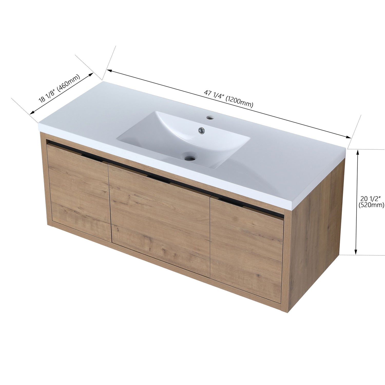 Modern Floating Bathroom Vanity Cabinet With Resin Sink Soft Close Doors And Drawer - Imitative Oak