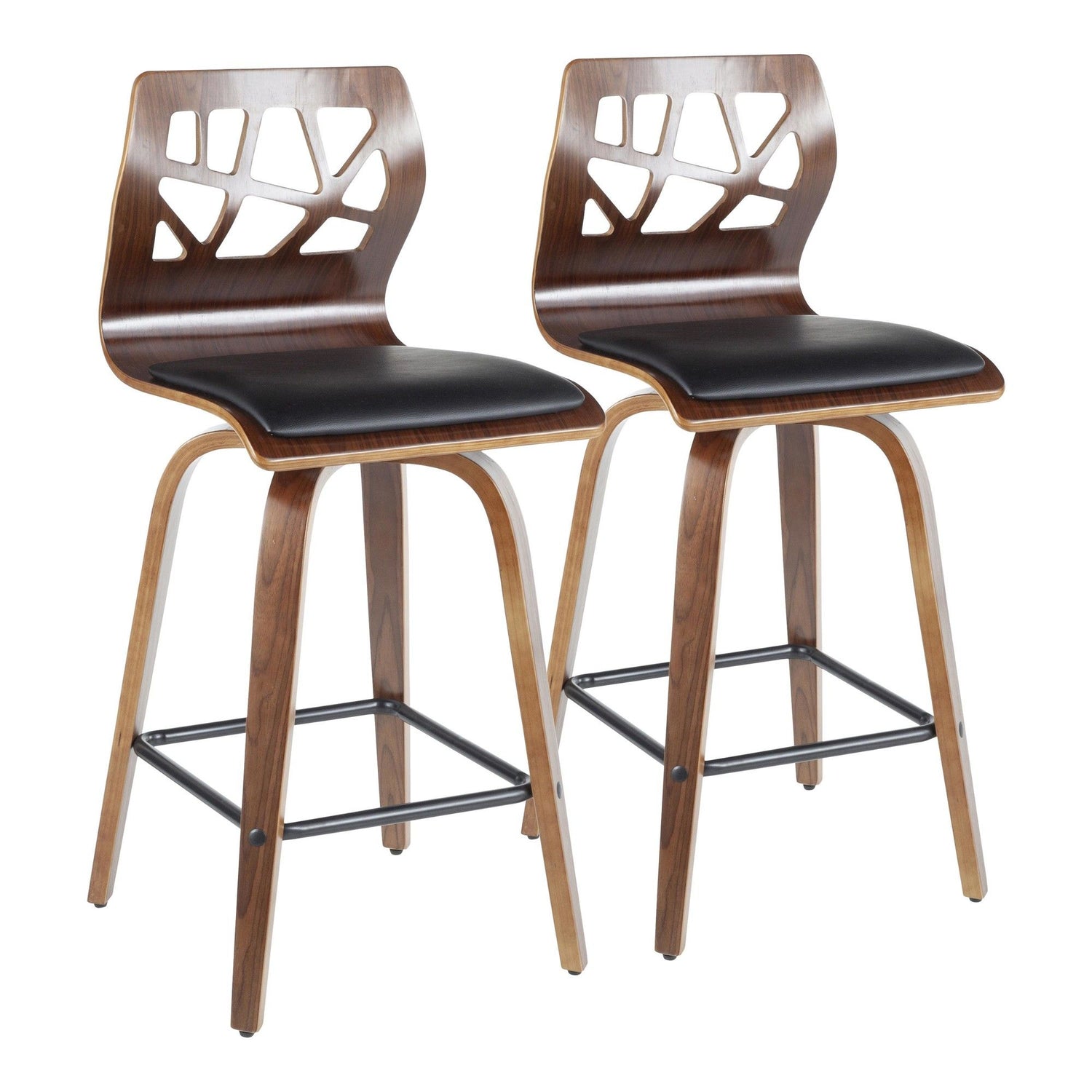 Folia - Counter Stool (Set of 2) - Walnut Wood And Black Faux Leather