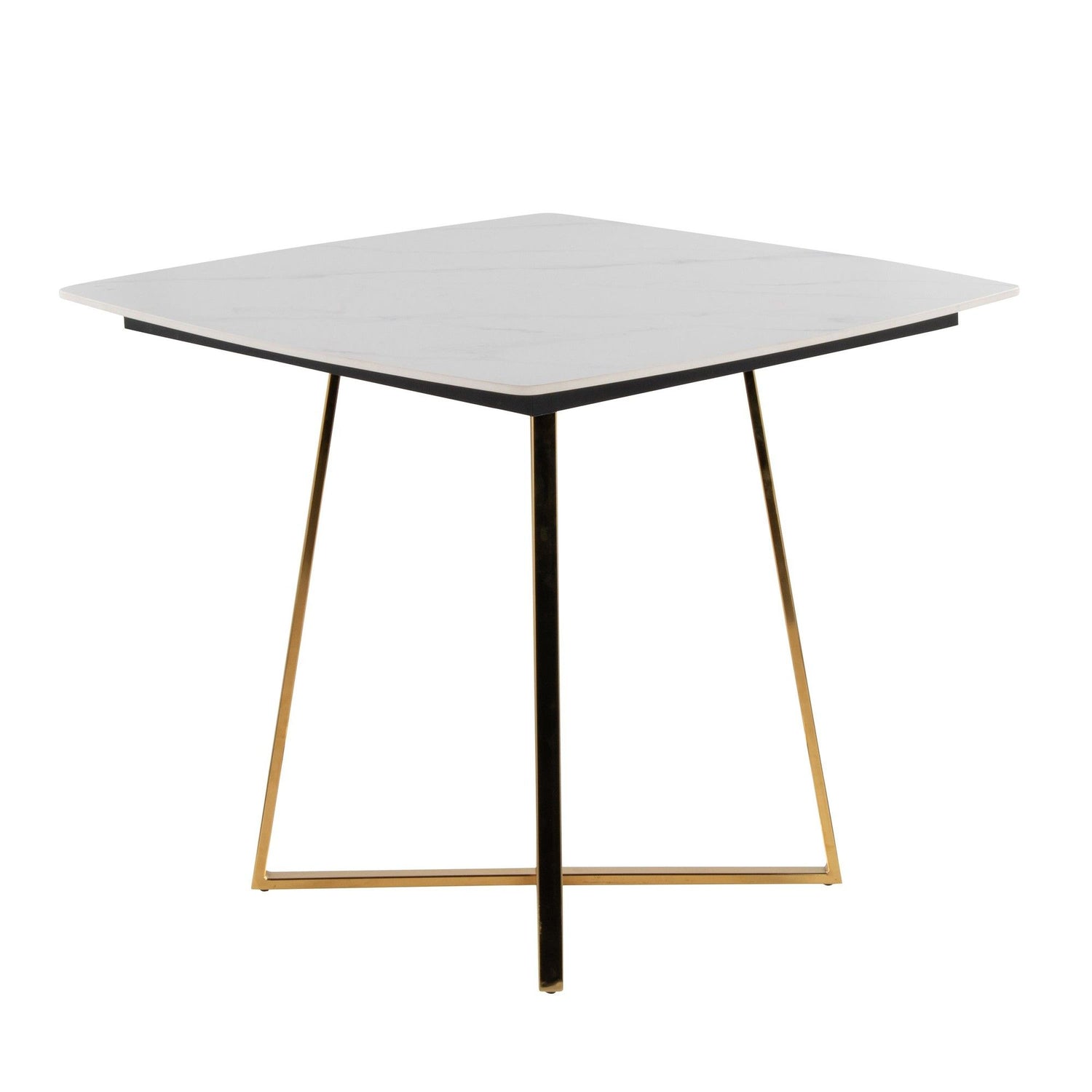 Folia - Dinette Table - Gold Metal, White Textured Marble, Black Wood