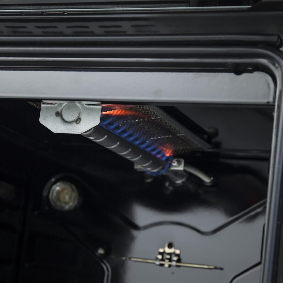 - Cook in style with a sophisticated black-finished oven interior, providing a sleek backdrop for your culinary creations.