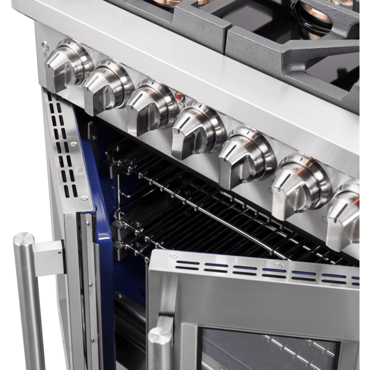 Forno Capriasca FFSGS638730 Freestanding French Door Dual Fuel Range with Air Fry, Steam Clean Oven, Convection Oven, and Grill/Griddle: 30" Width, 5 Sealed Burners, 4.32 cu. ft. Capacity